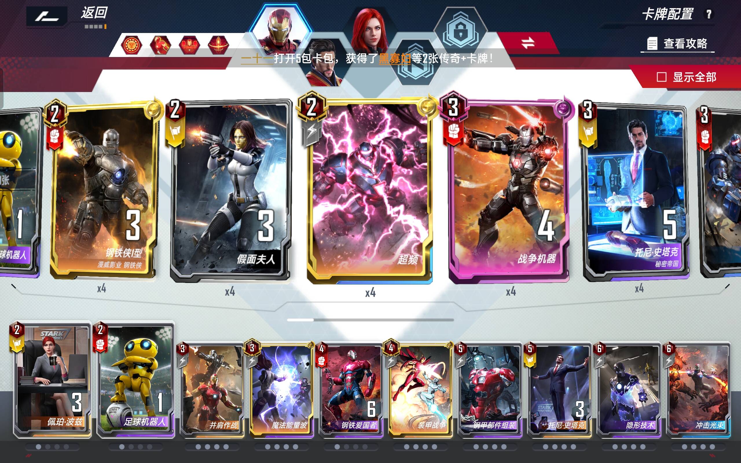4费:钢铁终幕,拿够4张再打出,看运气能不能拿到异界钢铁侠,检索单位优先6费两个铁人。爱国者配和维度回收赚钱工具。
