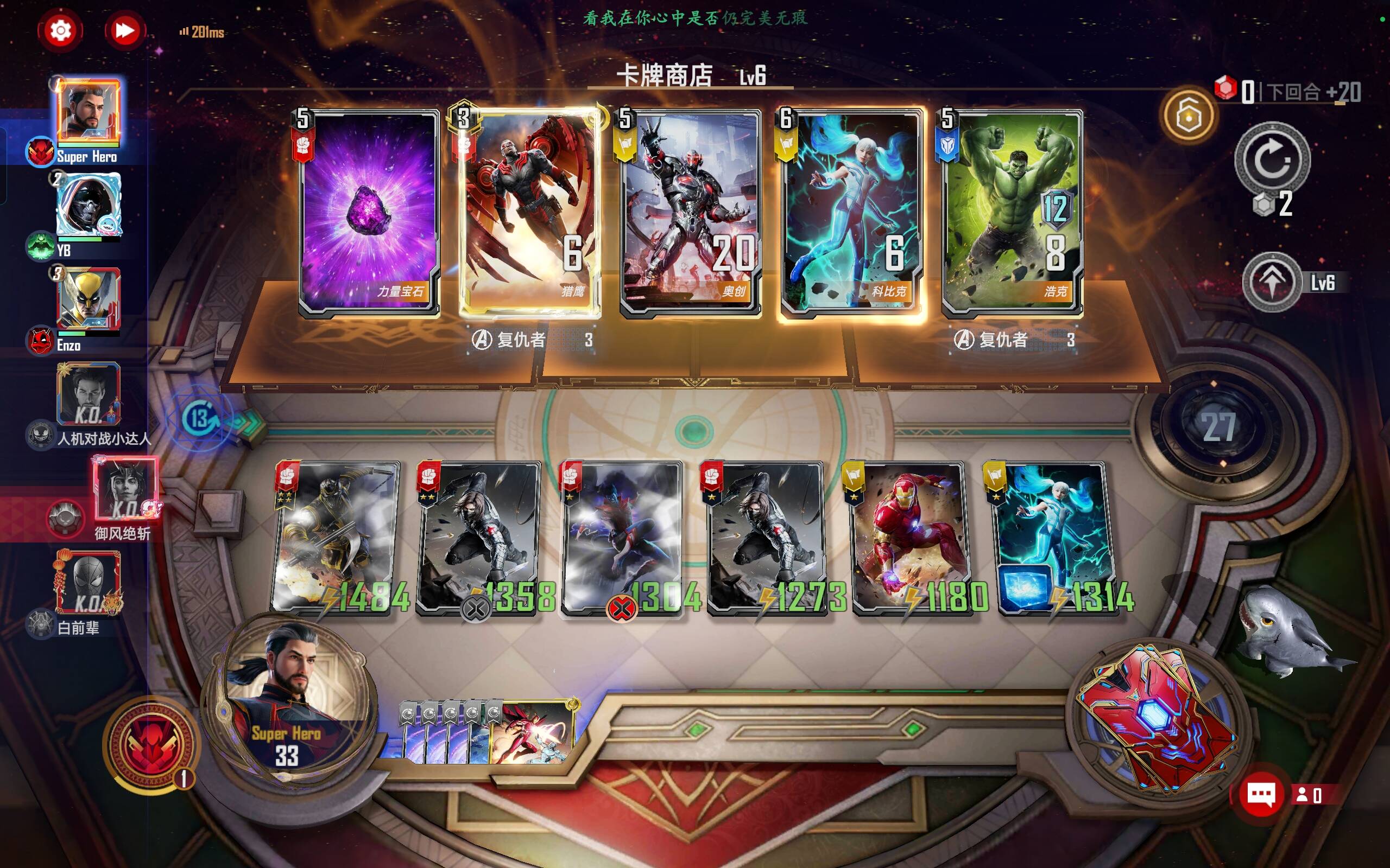 3费:黄蜂可以刷新前期战力,找叶莲娜,也可以让维度变现,对手是飞刀就打,看到不管费用可以拿。
