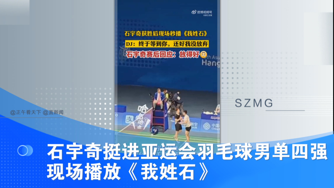 杭州亚运会的时候,每当中国羽毛球运动员石宇奇获胜,现场音控组立马就要放上一段《 我姓石 》。