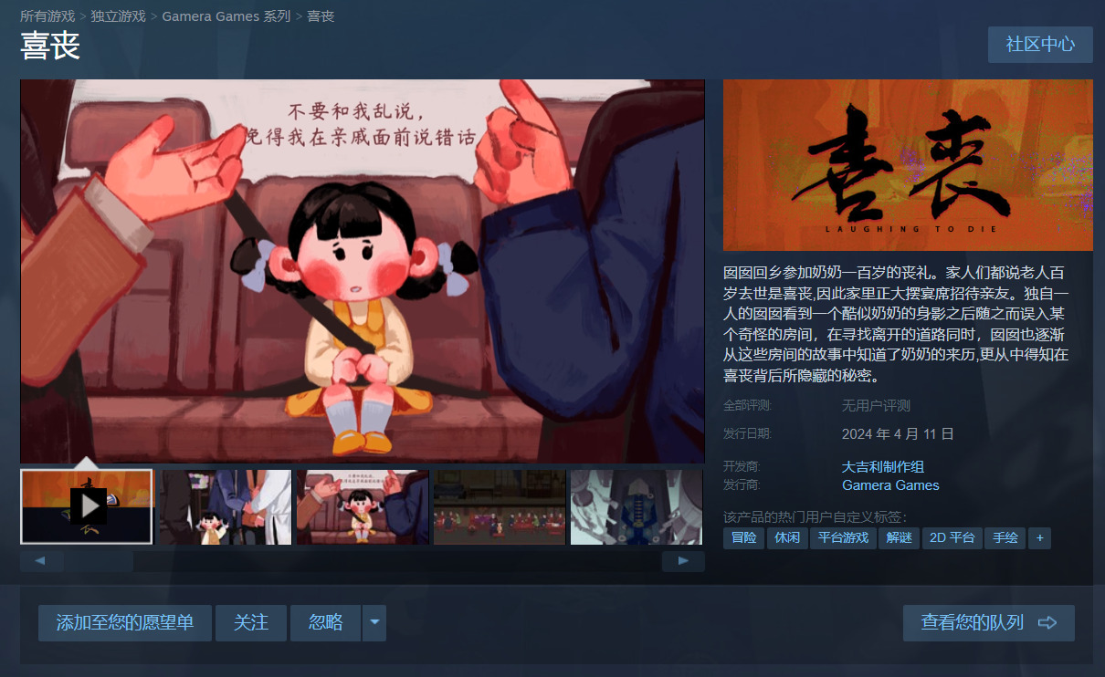 今日(4月3日),中式恐怖游戏《喜丧》将于4月11日正式发售,感兴趣的玩家可以点击此处进入商店页面。