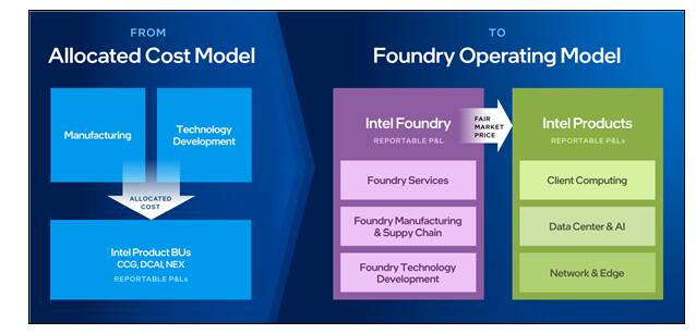 在新的财报结构下,Intel代工将核算来自外部代工客户、Intel产品的收入,以及过去分配给Intel产品的技术开发和产品制造成本。