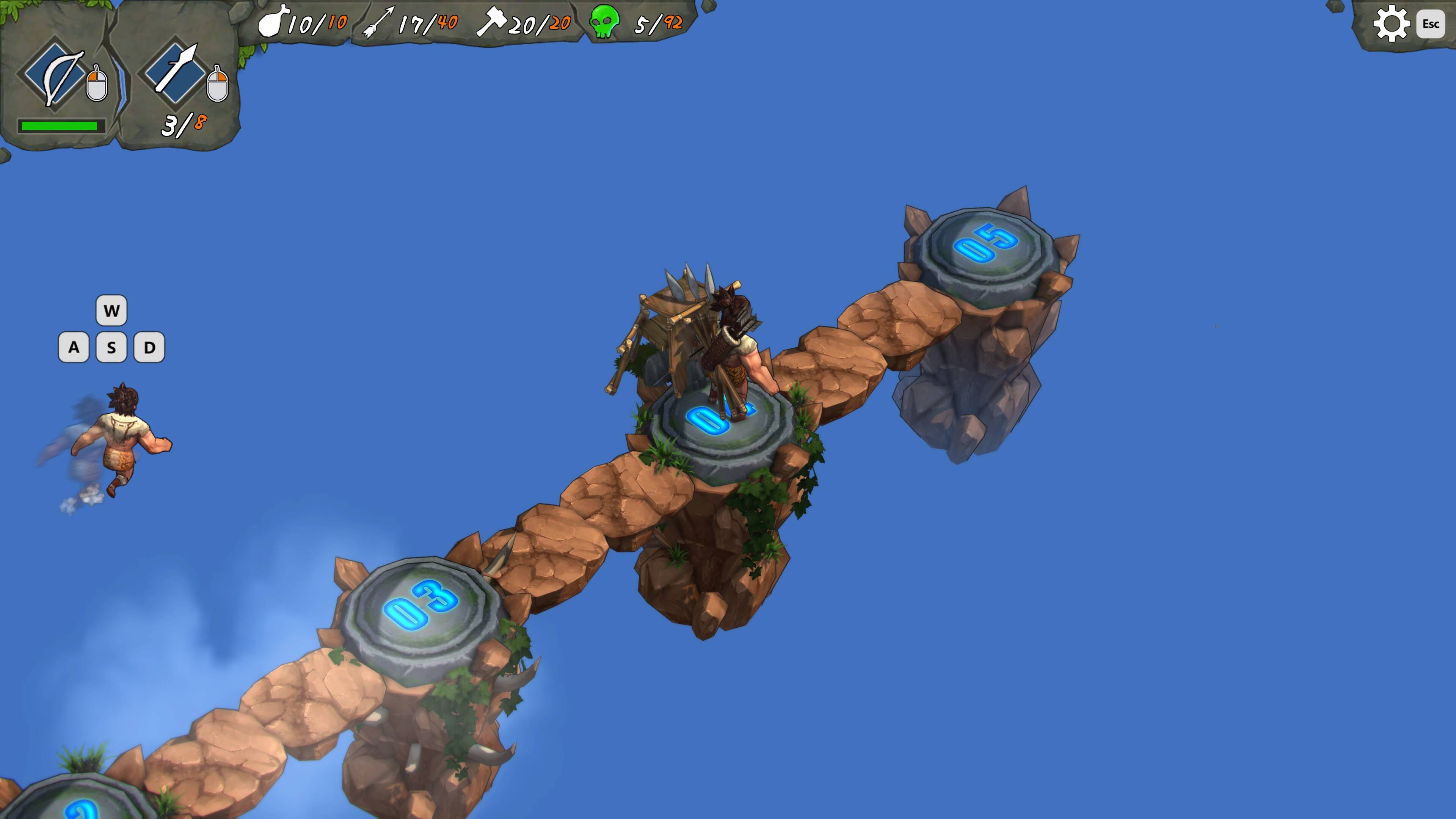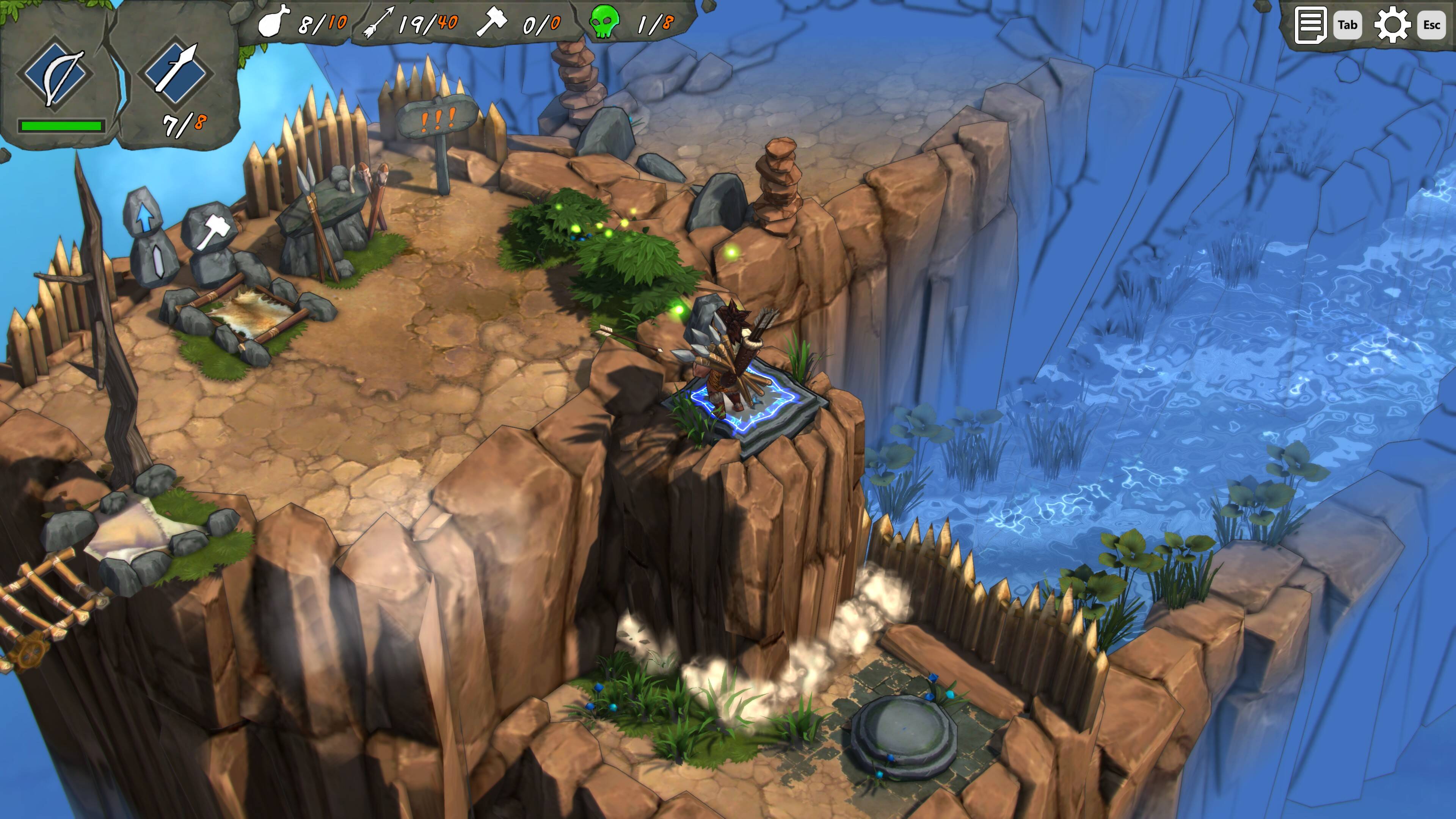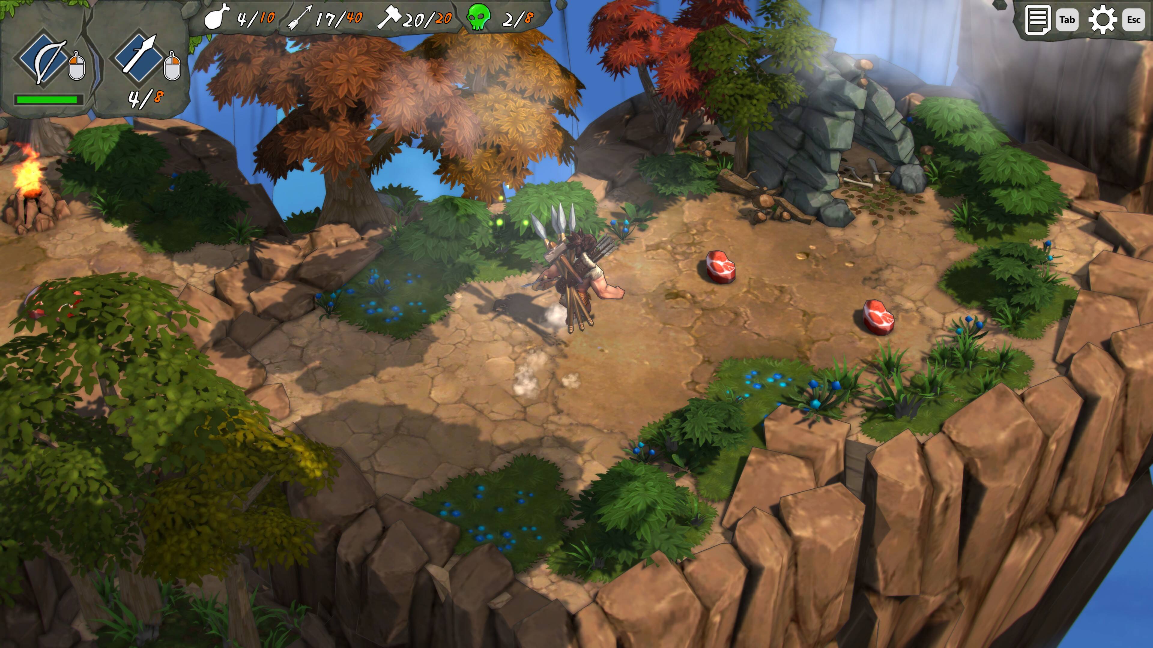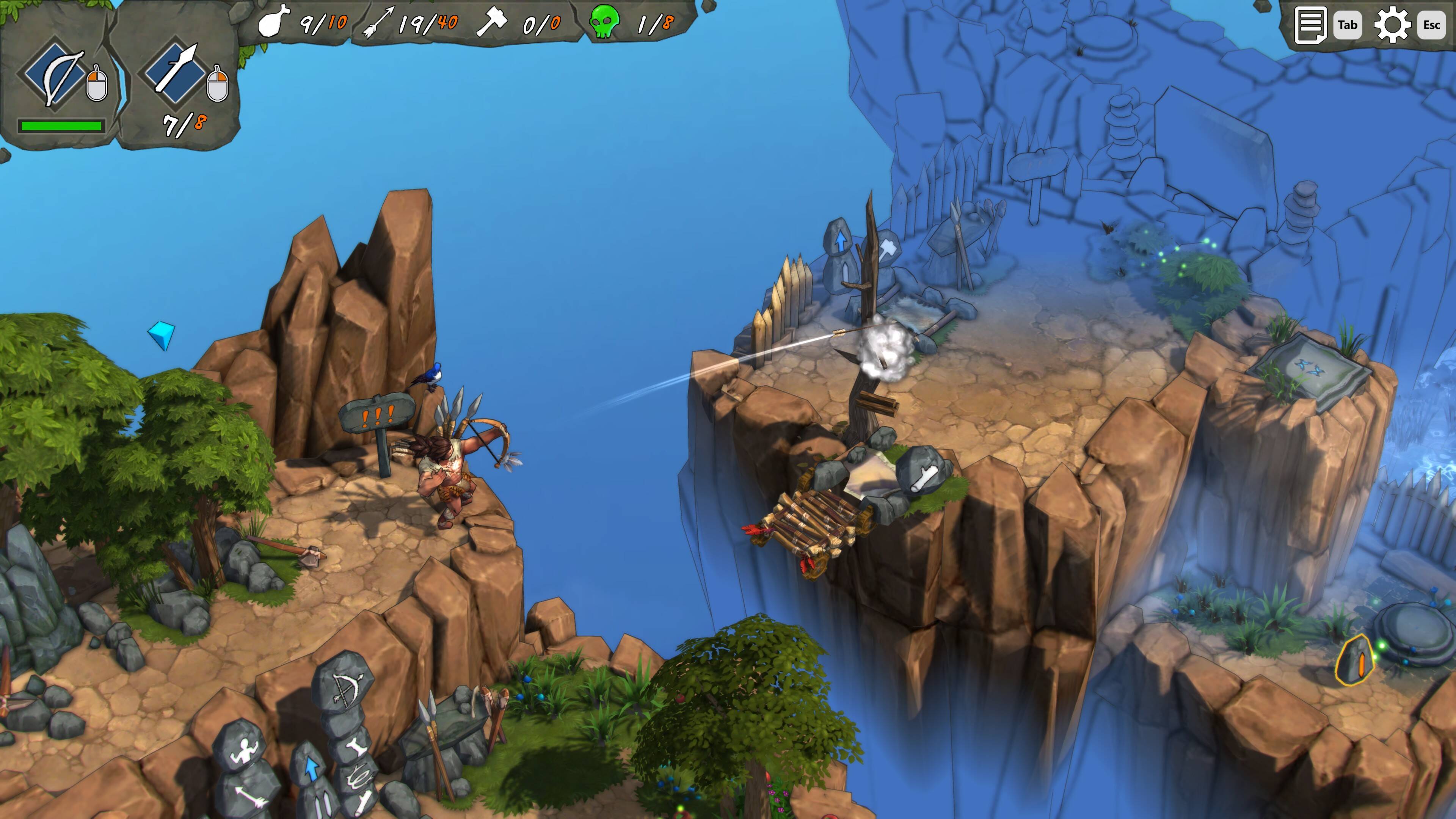 玩家在冒险过程中需要面对各种各样的敌人,从凶猛的野兽到狡猾的敌对部落成员,都需要玩家运用智慧和技巧来应对。此外,游戏中的生存挑战也是一大亮点。玩家需要时刻关注自己的饥饿度、口渴度以及疲劳度,确保自己能够在恶劣的环境中生存下来。游戏的攻击和跳跃手感不是很舒服,很容易掉下去,好在游戏掉下去并不会直接死亡,只会去上一个存档点。