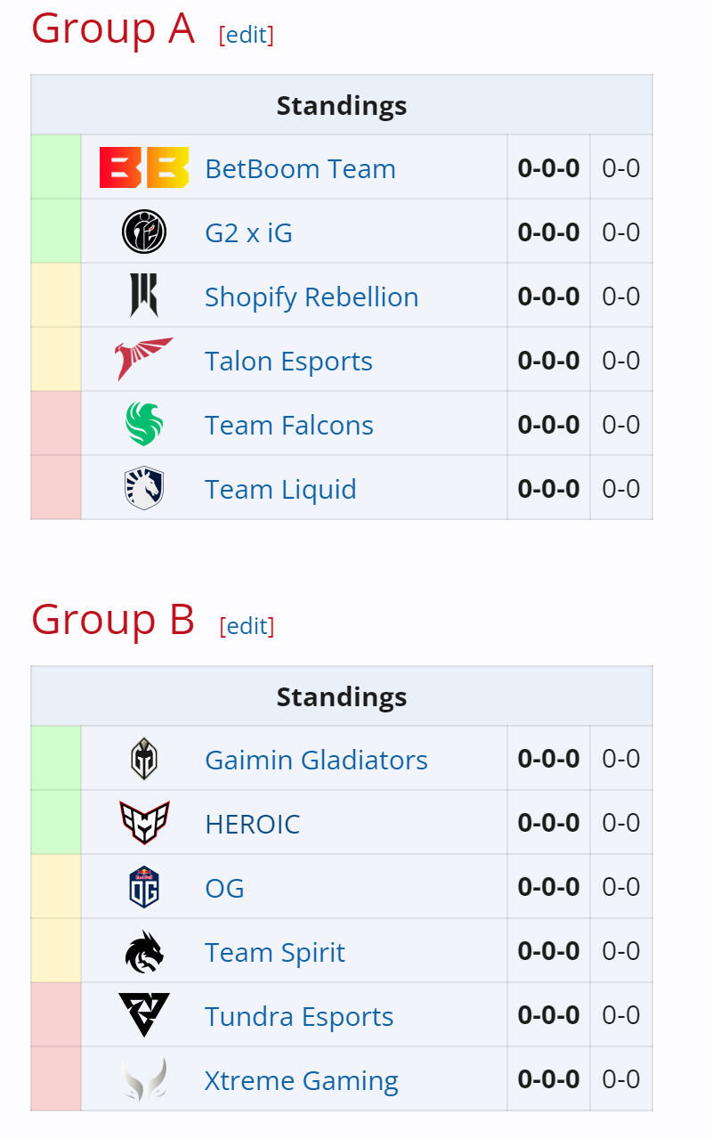 B组队伍为:GG、Heroic、OG、Spirit、Tundra、XG