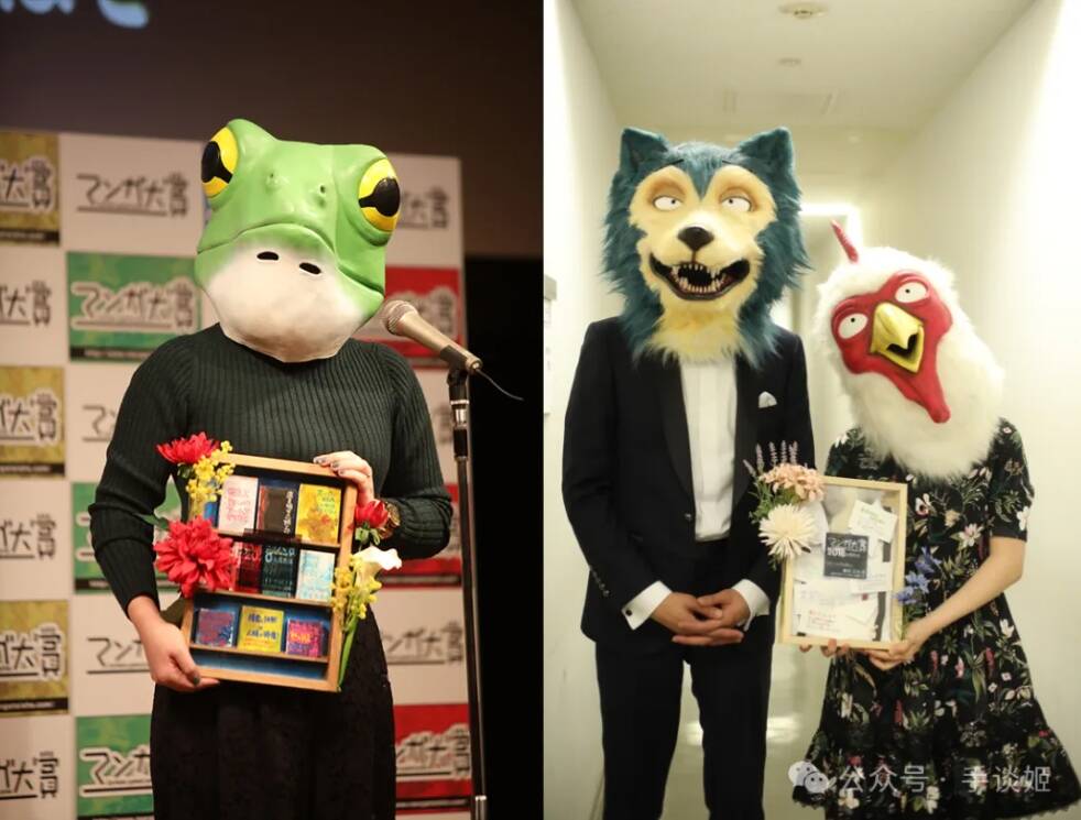 另外《蓝色时期》的作者山口飞翔、《BEASTARS》作者板垣巴留,也在领这个奖时戴了头套。感觉国内更多是在彩票中大奖时会出现这种情况……