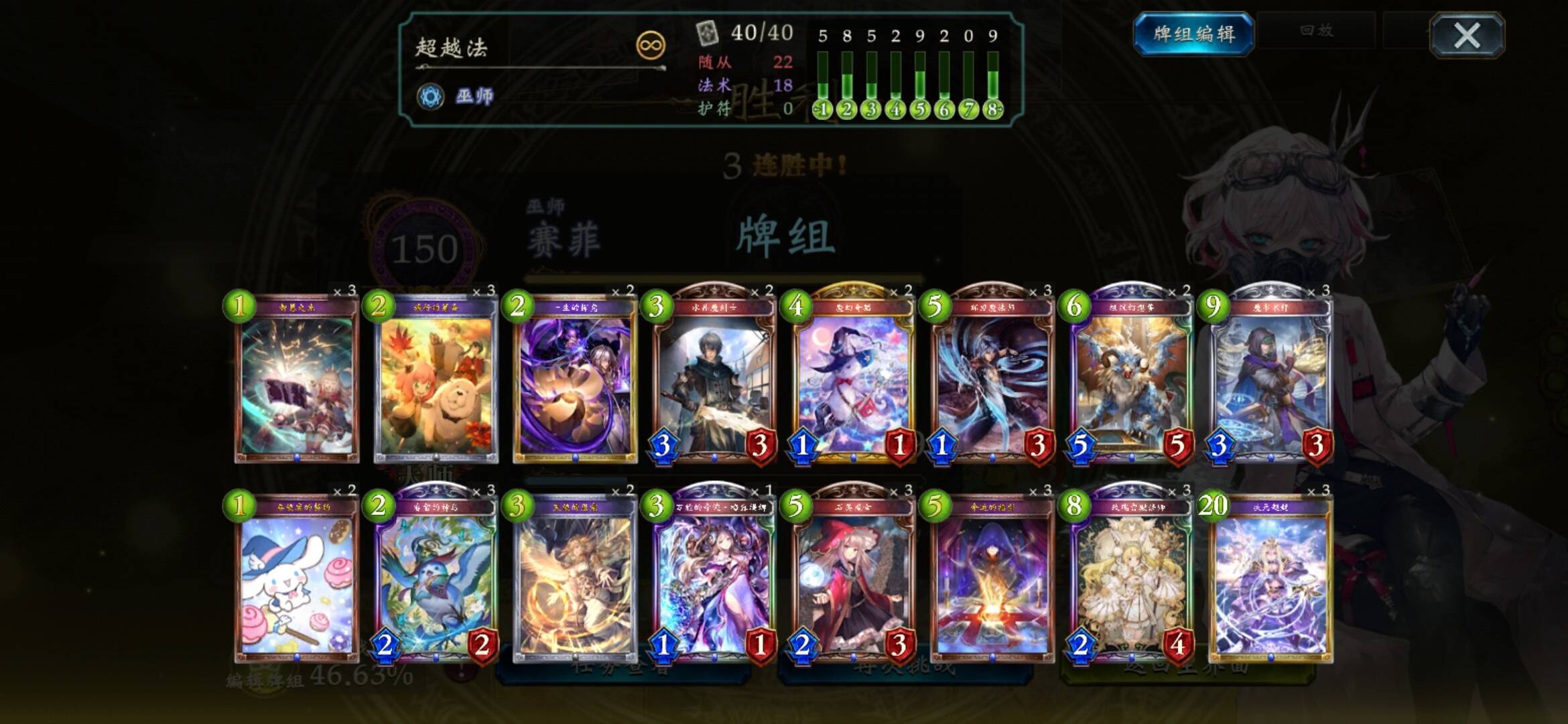 3日连胜合集总数(括号内为无限):51(7),其中妖1(1)皇4(0)法6(4)龙5(0)死4(0)鬼26(0)教2(0)鱼3(2)