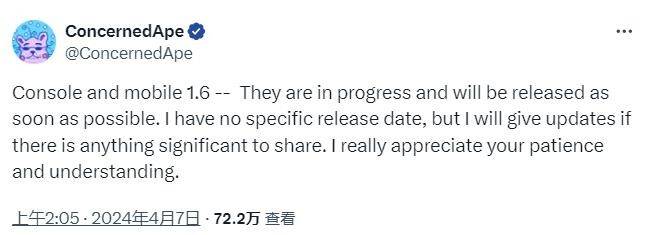 《星露谷物语》1.6版本目前已经上线了PC端,作者ConcernedApe在二月份曾表示主机端和移动端的1.6版本将尽快发布,现在他在社交媒体上重申了这一点,他表示主机端和移动端的1.6版本正在开发中,但目前还没有具体的发布时间,更多重要信息将在之后进行更新。