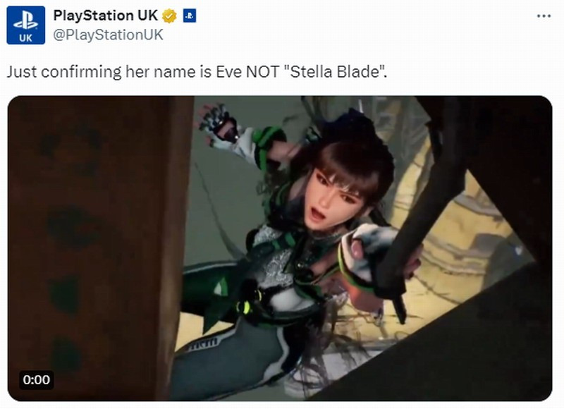 《星刃》将于4月26日发售,登陆PS5平台。该作热度非常高,却有不少玩家将性感女主Eve称为“Stella Blade”。近日PlayStation UK官方发推文称:“只是确定下,她的名字是Eve,而不是Stella Blade”。