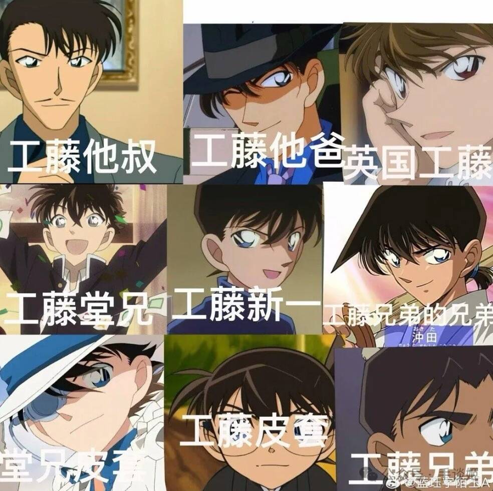 所以我们还是来聊聊柯南,我们知道柯南和基德在此前的作品中有很多互换身份的桥段,在长达多年的柯南同人作品中,亦不乏相关“血亲论”的论调,究其原因,应该说是青山刚昌画的男性帅哥长得都很像。