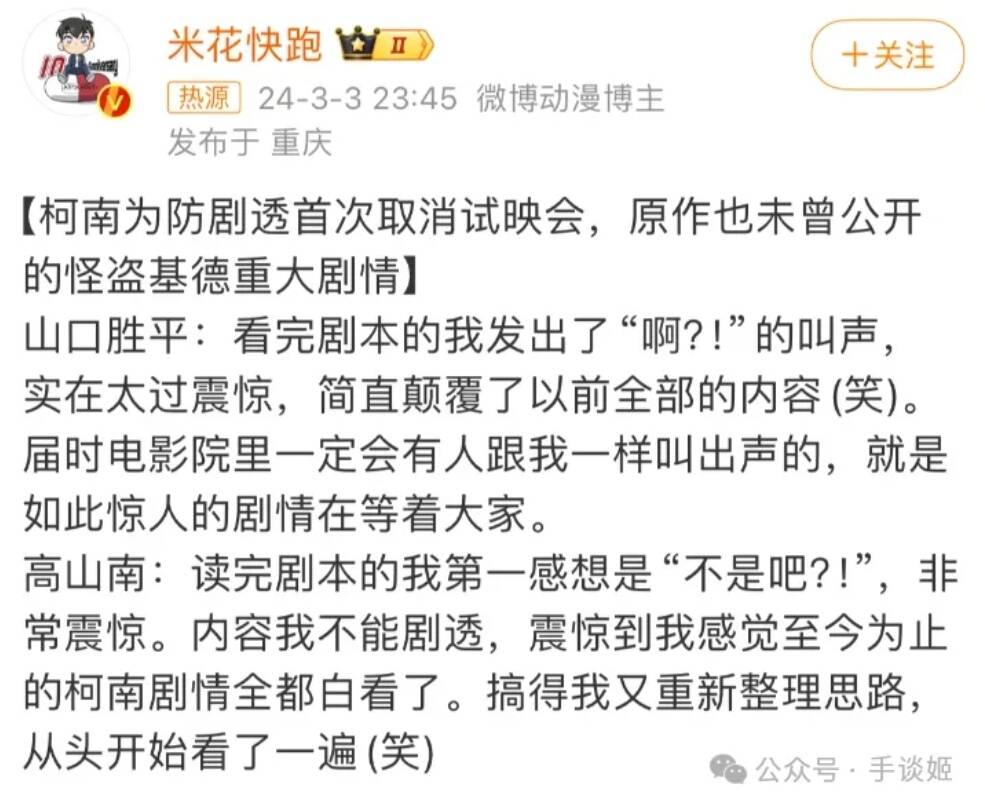 哎不过《柯南》故事演变到今天,对于这种噱头也比较看开了,要不然我们猜猜明年剧场版又会有啥惊天噱头?