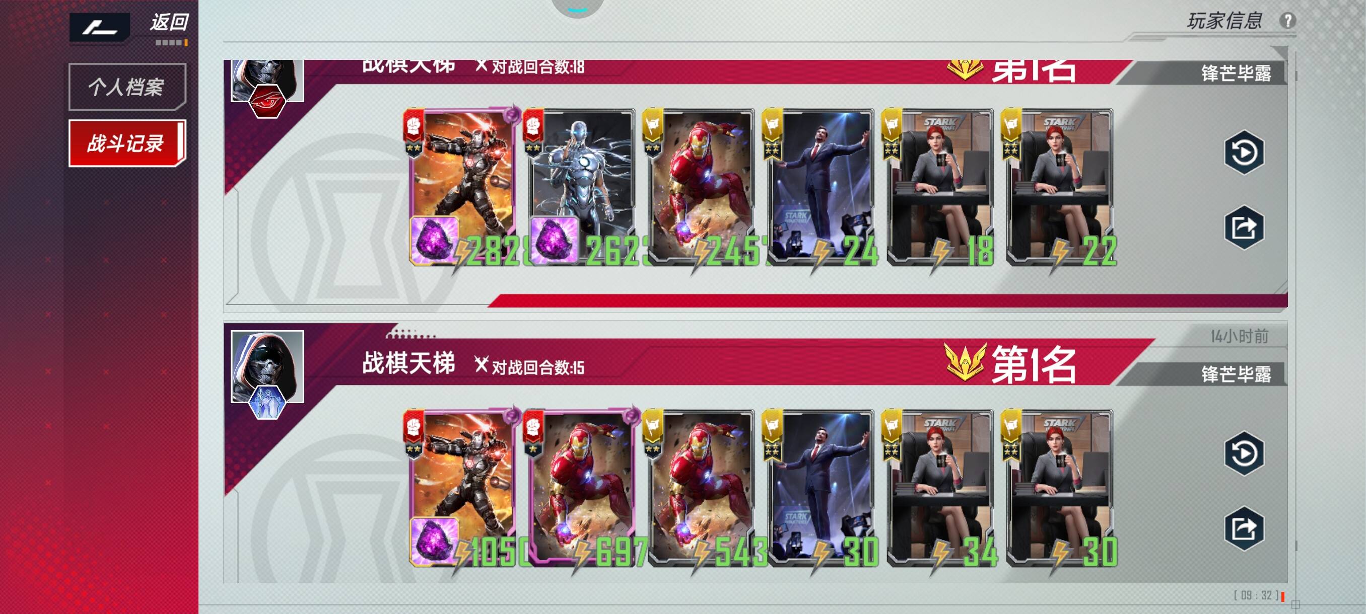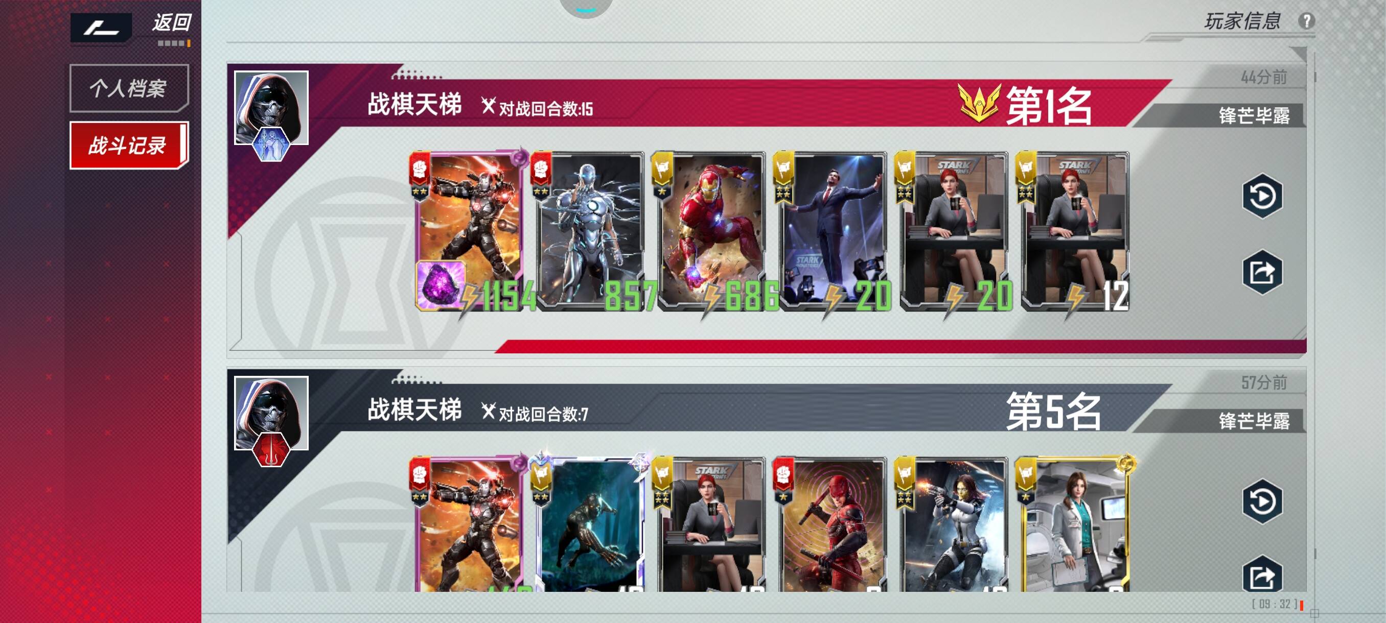 7-9回合:通过4星假面升级到5回合,增加8点血量,增加了容错率,同时高战力异界机器能打,就算输只要不遇到飞刀不 会被入太多血,此阶段找托尼和声波,然后根据对手情况考虑打缩小或者加血,缩小可以全部用完但是加血必须 留1张,买到托尼以后可以考虑买一个钢铁侠5费事件,拿到角色后上场,通过托尼链接效果增加战力稳血,上5 以后,可替换的卡找到后优先卖假面>夜魔>根据血量健康程度金钱豹或者简,如果金钱豹给了叶莲娜就用叶莲 娜打出买声波,在卖出通过时间宝石刷叶莲娜买声波,另外在这个阶段如果小辣椒是2+1,则都上,4星也没关系