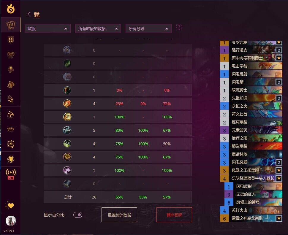 来自Kismet的一套过载萨,它使用这套卡组在400名左右打出了20场65%胜率的战绩。