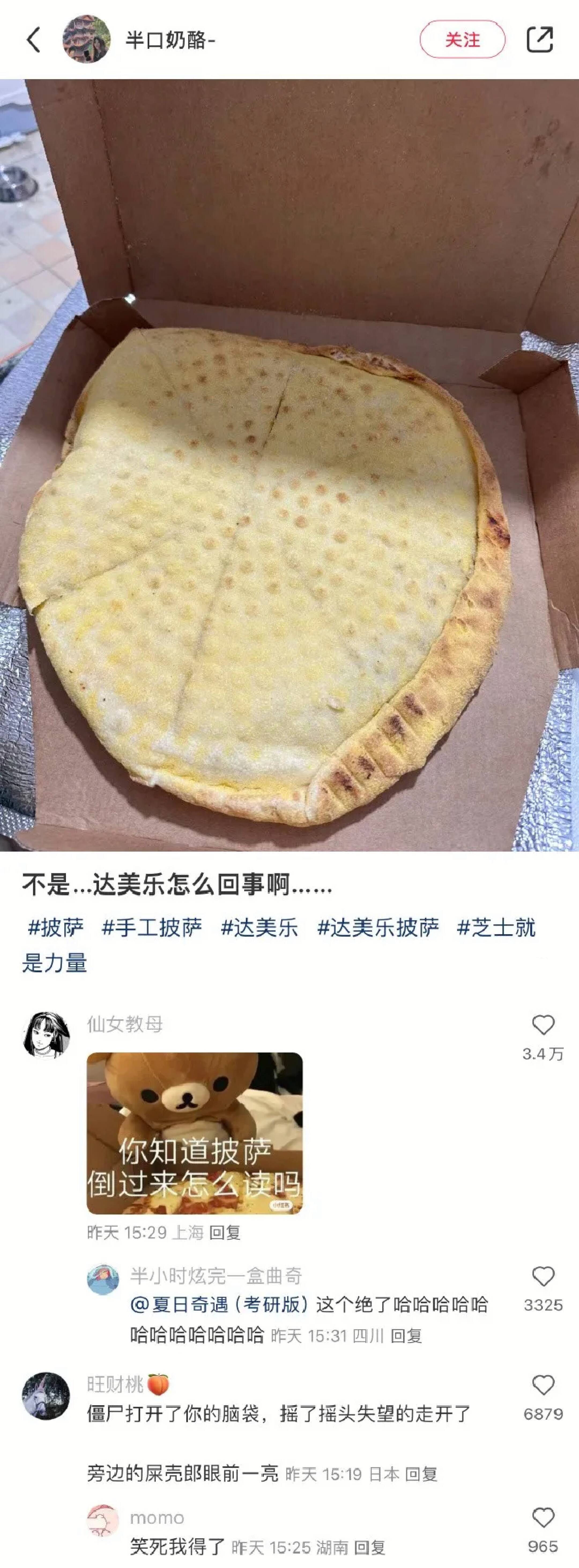 说到达美乐,我昨天想吃来着,打开美团一看二十多公里,算了,还是别吃了。