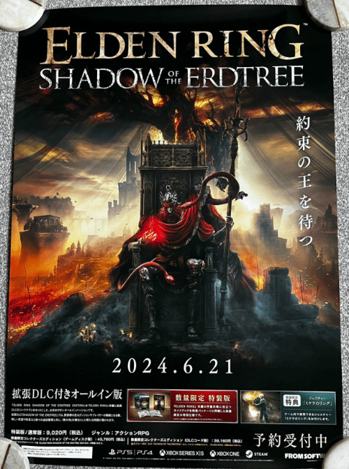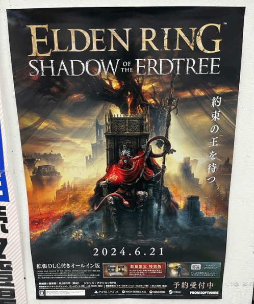 近日,海外推主Genki分享了日本零售店内《艾尔登法环》DLC“黄金树幽影”的宣传海报,与此前公布的主视图一致,全新BOSS“穿刺者”梅瑟莫正坐在一把椅子之上,该椅子是正篇初见蒙葛特时房间中的那把,梅瑟莫也被称为“玛莉卡之子”。