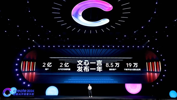 在最新一届百度AI开发者大会上,李彦宏表示,文心一言用户数突破2亿,API日均调用量2亿,服务客户8.5万,千帆平台AI原生应用19万。