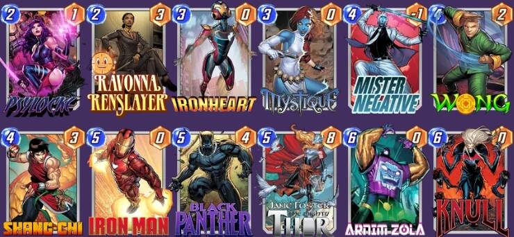 “没朋友”套路最泪目的代表——好久不见这么纯粹的【负先生】构筑了,回想起往日常坐第三梯队末尾的冷板凳,直叫大家感慨万千,也得感谢【灭霸】的失势机缘巧合地一同拉低了【M.M.M.】的出场率。这其实也基本反映出环境的战力膨胀,在人均超模的情况下单凭一个3/3的站场很难确保胜利。