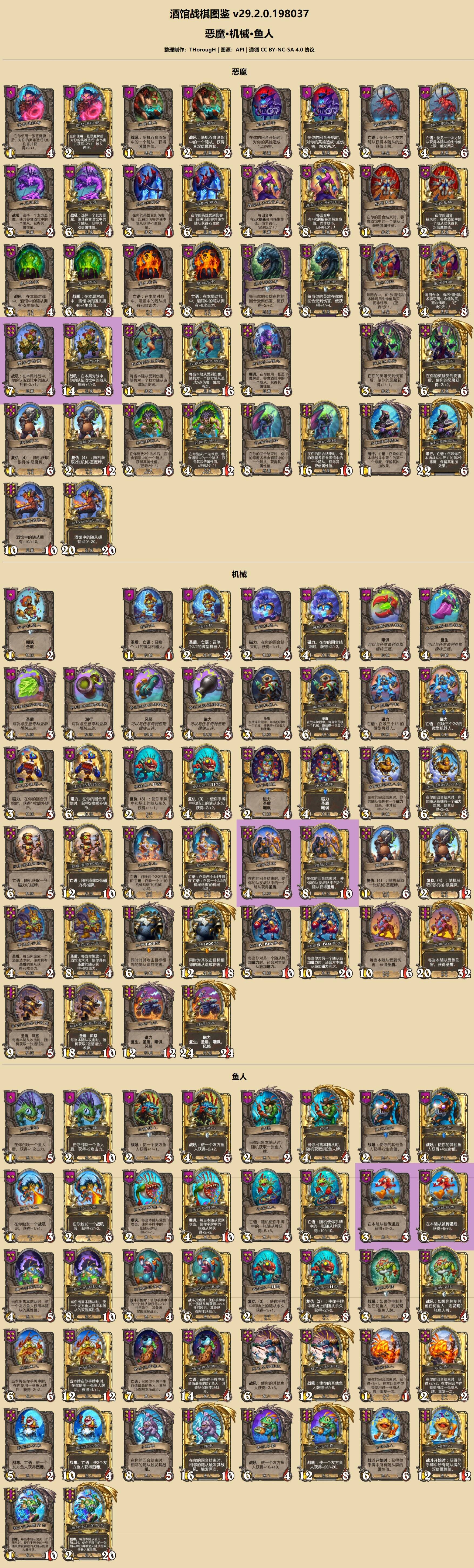 2024/4/17 更新版本29.2.0 S7赛季+战棋双打本次更新采用官方API图源,部分随从的金色版卡图缺失,敬请谅解双打专属随从也一并包含其中,但以特殊底色加以区分为了不显得突兀,整体也采用了炉石收藏界面风格的底色