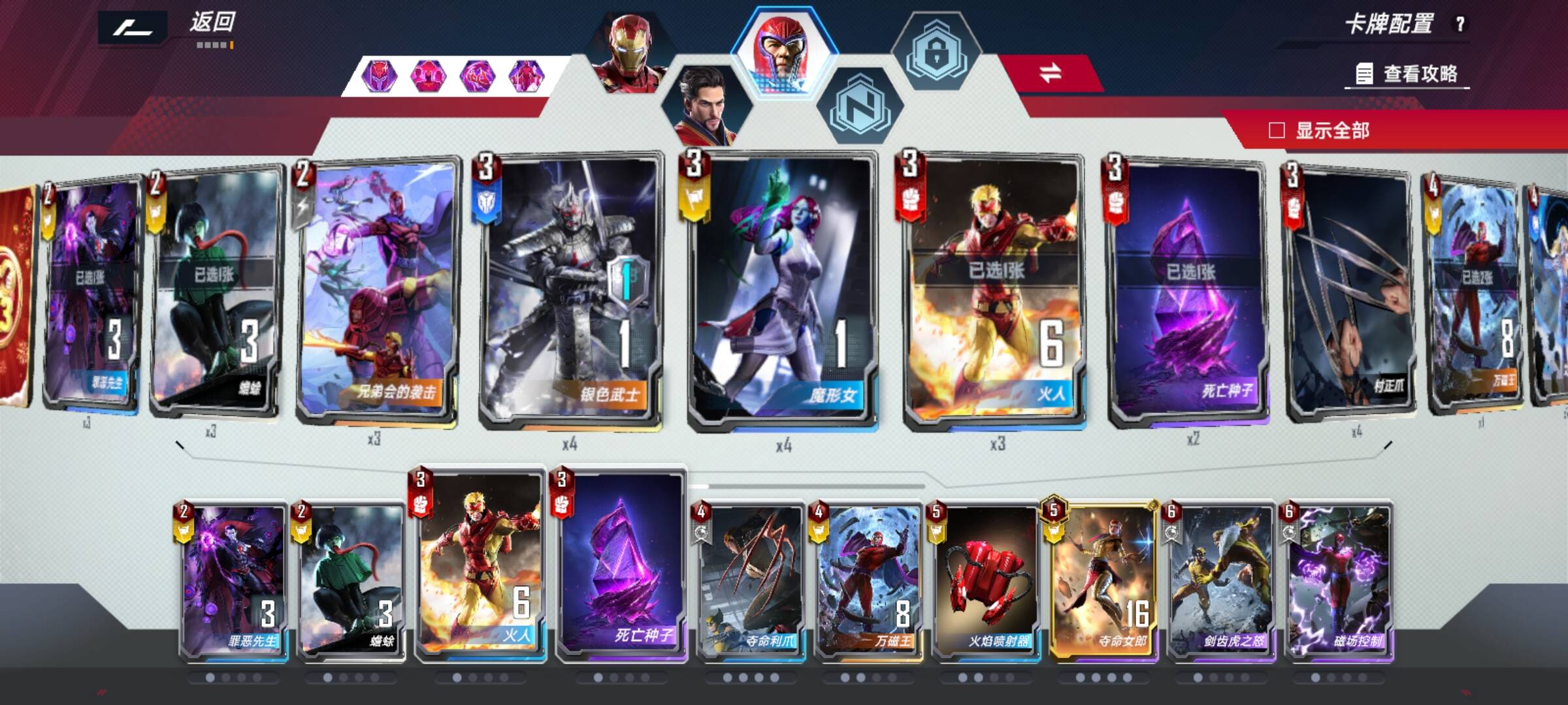 万磁王:1-2张。配合种子,传播死亡;在隐形女和毁灭没有到来之前,作为临时核心;不升星;带2张,卡格子随时卖,后期有需要再上场;偶尔配合磁场控制,打出意想不到的效果。【临时核心】