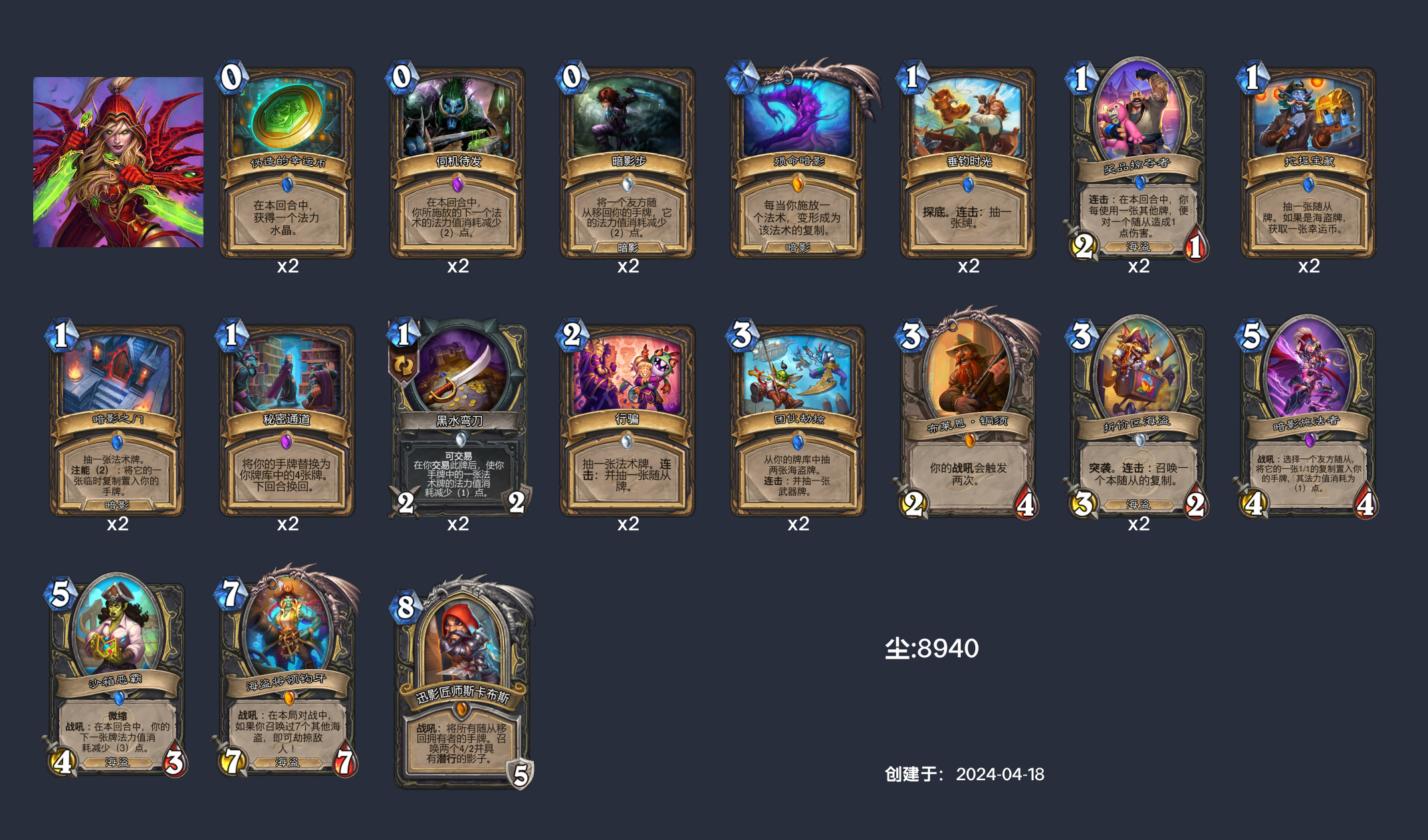 更多卡组: 燁魔的炉石卡组搬运: https://space.bilibili.com/628279337/dynamic