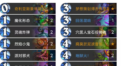 3-5费:展开,此时我们优先打造自己的场面,提升场攻。具体来说,就是暂时先不考虑对方场面,自己能造多大的场面就造多大的场面,尽可能把0费的955被禁锢的恐魔,低费奇利亚斯,0费红石头熔核巨人,还有星空投影师复制0费随从全部扔到场面上。