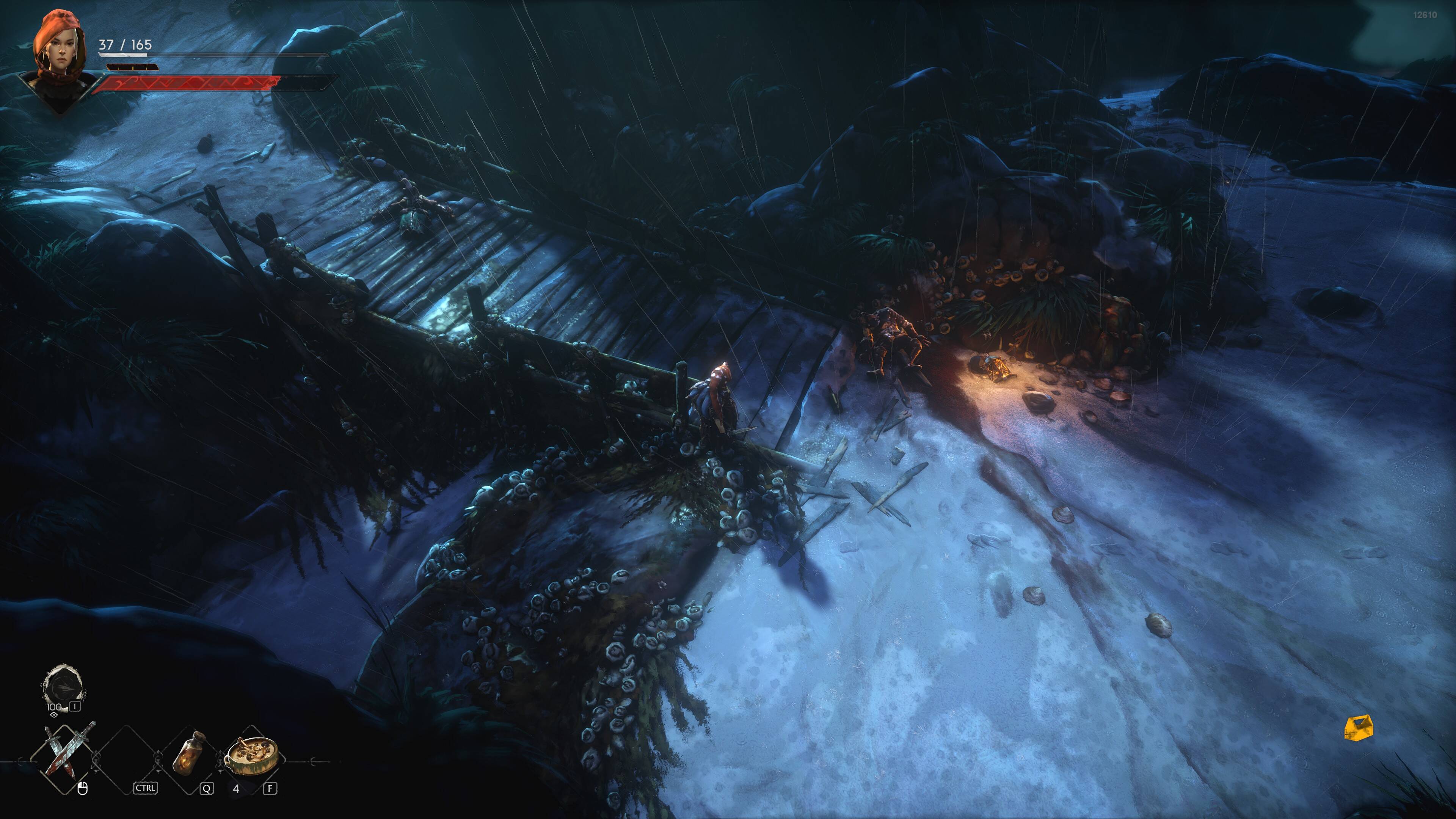 爬上藤曼,需要注意这边有个怪,只需要潜行偷袭就可以了。
