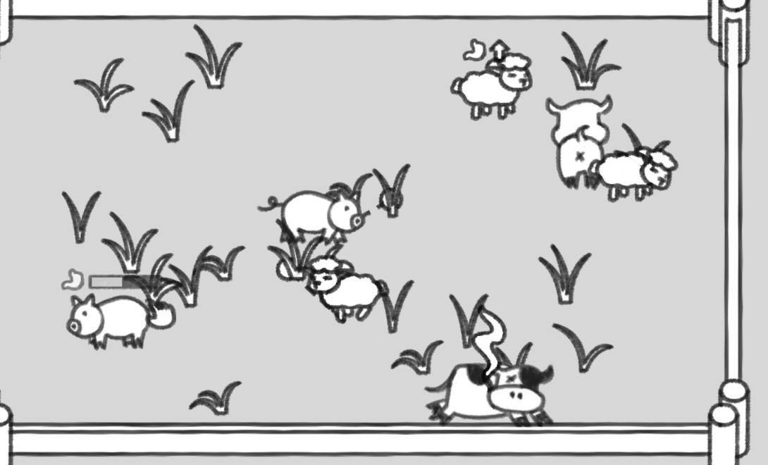 最开始只有一只动物,动物需要吃草。草会缓慢生长。