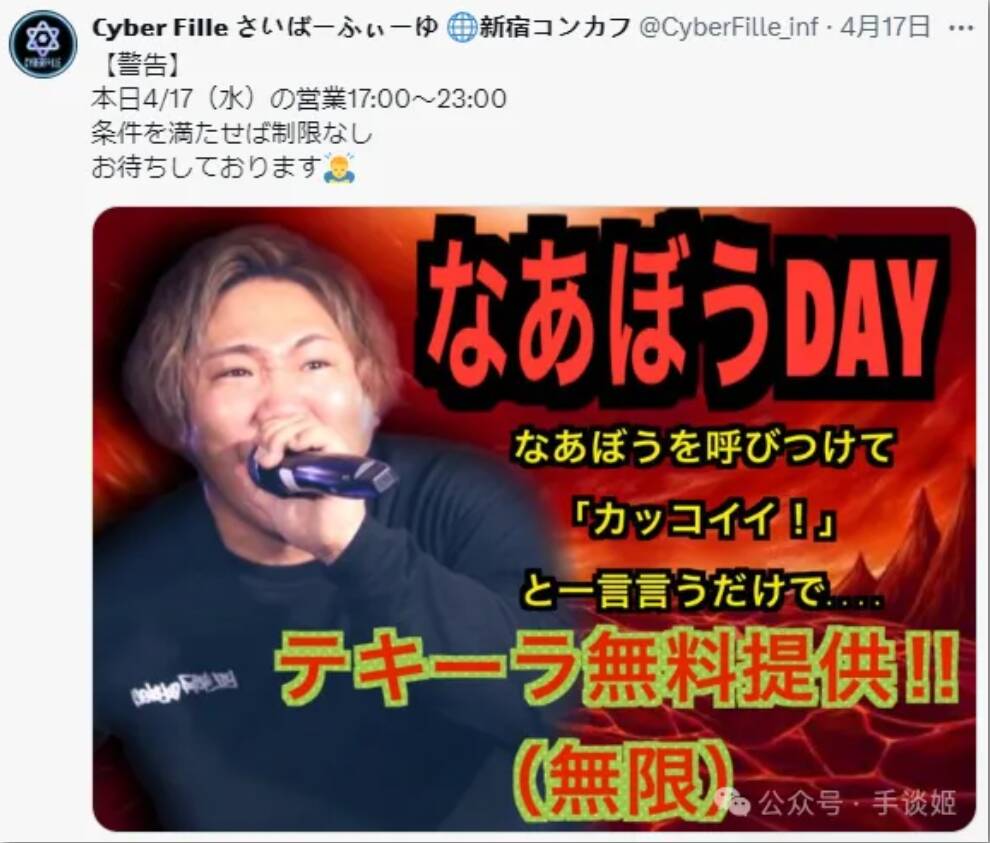 并且如果直播间没几个人,还能能叫“职业是主播”吗?于是姬找到nabo的账号,看到了熟悉的地点“歌舞伎町”,本周讲那牛郎的时候应该也提到了这地方。nabo在招募从业人员,而他则是新宿的一家偶像咖啡厅的店长。