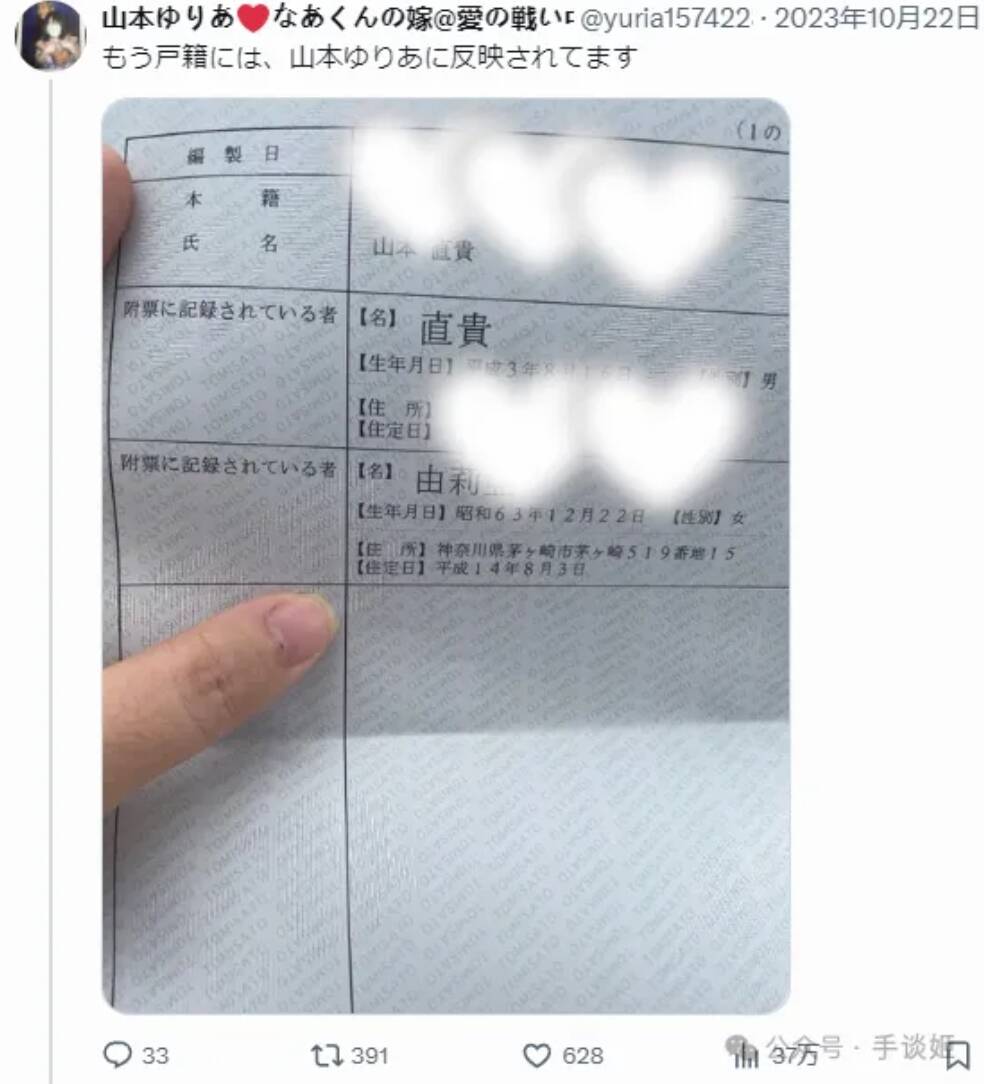 说日本那边最近发生了一件惊人的事情,去年10月,男子在社交媒体时惊讶发现自己“被结婚”了,女子在社交媒体上公布了自己的户口本。