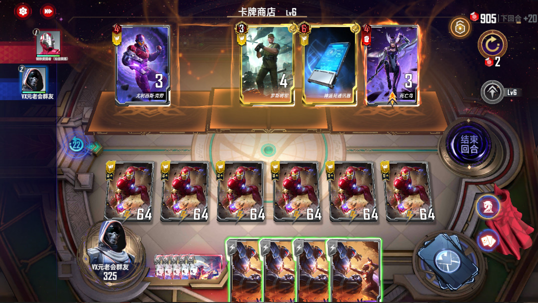 等你金币700左右的时候,就去找光头神盾局局长和钢铁侠,托尼辣椒就可以卖掉了,每回合让4星局长给4星钢铁侠升一次8星,总共升6次,需要6回合,所以你需要卡好回合25回合前搞定这些,事实证明很容易,如下图:其中场上有四个位置是废牌,随便上