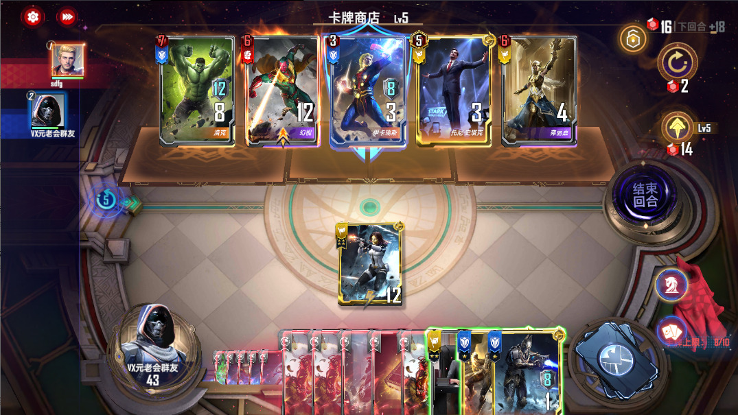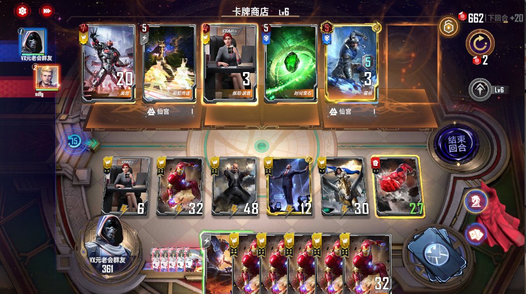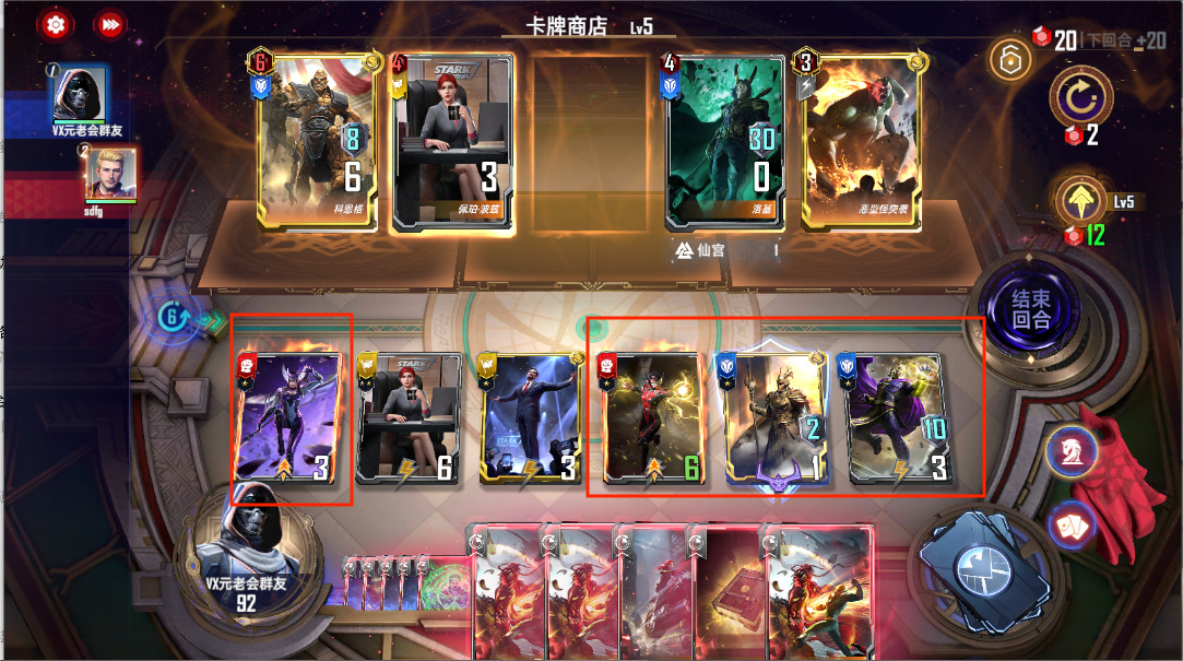 这三张是重中之中,前几回合,血量优先金币,保证血量稳定的前提下再去找牌,没有金币的情况下拿血量,总之饮血战斧>生命结界>先攻武库,前三回合找不到血量牌优先拿夫人和永恒组守卫捏在手里等待回血,场上任何怪不要放(因为伤害加成里面我点了移除场上4个角色),不升本卡2本找辣椒的同时找阿斯加德的召唤,辣椒拿到一张后就可以直升5本去找托尼,然后挂机涨钱钱钱钱钱钱钱钱钱钱钱钱钱钱钱钱钱钱钱钱钱钱钱钱钱钱钱钱钱