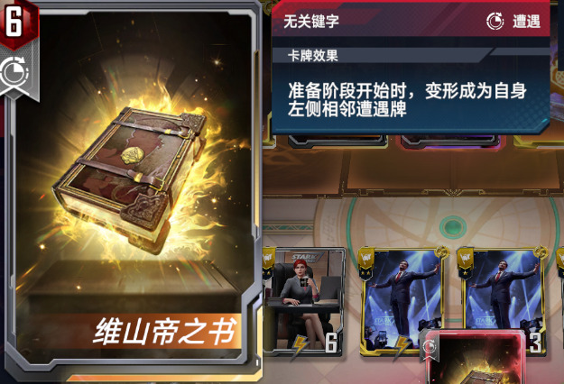 如此反复刷钱,BOSS是25回合出现,我一般是刷钱到700左右就开始启动钢铁侠,金币是完全足够的,在刷钱的过程当中注意要找齐5张屠龙拳法捏在手里,我最多找到了9张,所以百分百是可以5张拿到手里的,如果实在找不到你就必须留意下图这张牌了,维山帝之书可以复制你遭遇池的任意一张卡牌,我一般前提复制先攻宝库或者饮血战斧头生命结界这些牌,后面去复制屠龙拳法,屠龙拳法99的伤害最终打BOSS的时候需要拉满五张,不要艾丽卡刷任务的那张卡牌,刷任务牌很浪费时间!咱们讲究的是速通并且高伤害!!!!