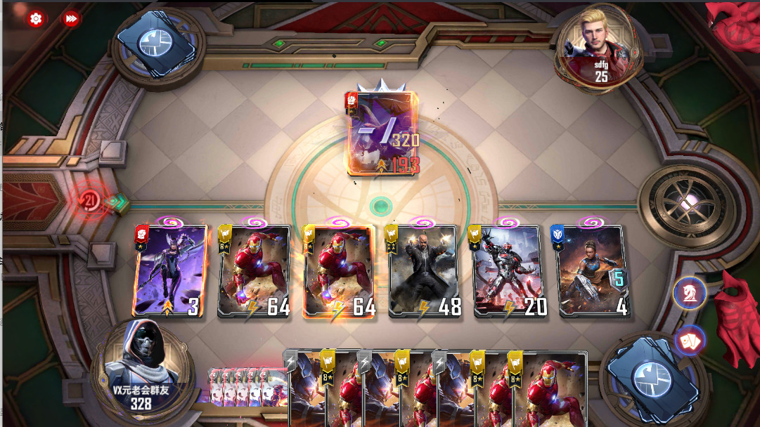 当你全部钢铁侠8星后,上2-3个钢铁侠把BOSS前回合的那个小BOSS给解决掉,如下图: