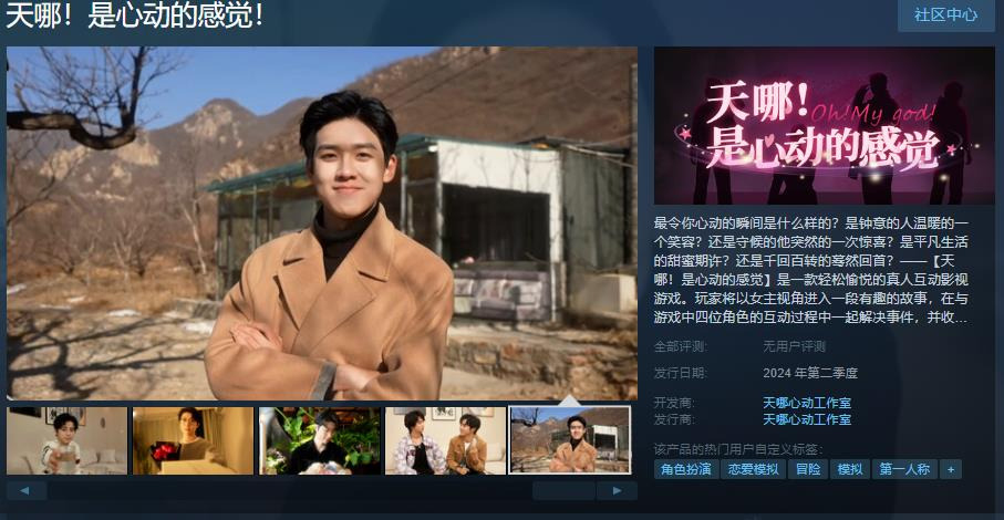 今日(4月18日),国产真人互动影视游戏《天哪!是心动的感觉!》Steam页面上线,预计于2024年第二季度发售,感兴趣的玩家可以点击此处进入商店页面。