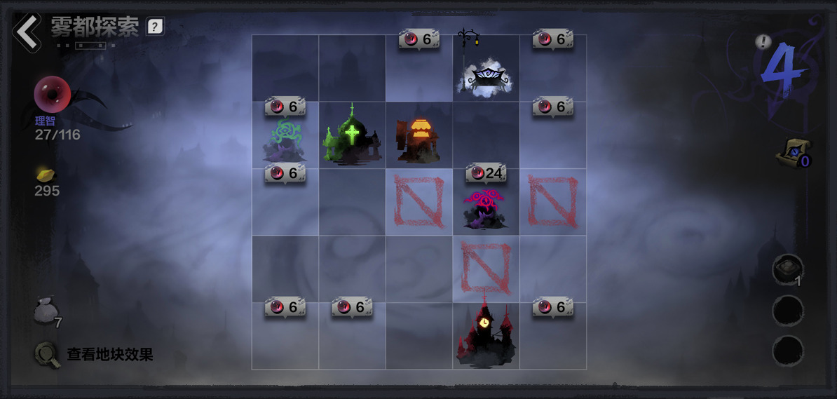 在探索雾都的过程中,需要时刻注意左上角的理智值消耗,就如同克苏鲁神话小说中如履薄冰的调查员一般。毕竟猎人们只能通过消耗理智才能驱散层层迷雾,挑战迷雾背后的随机肉鸽挑战、寻找钟楼并平息那不可名状的怪谈。