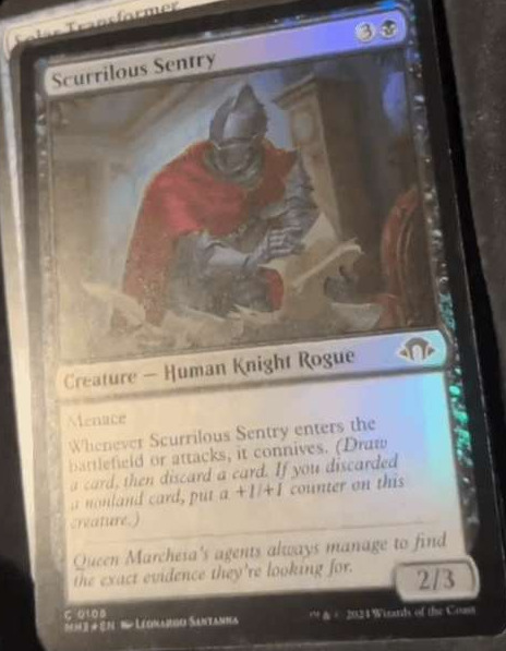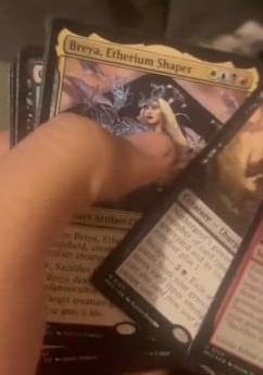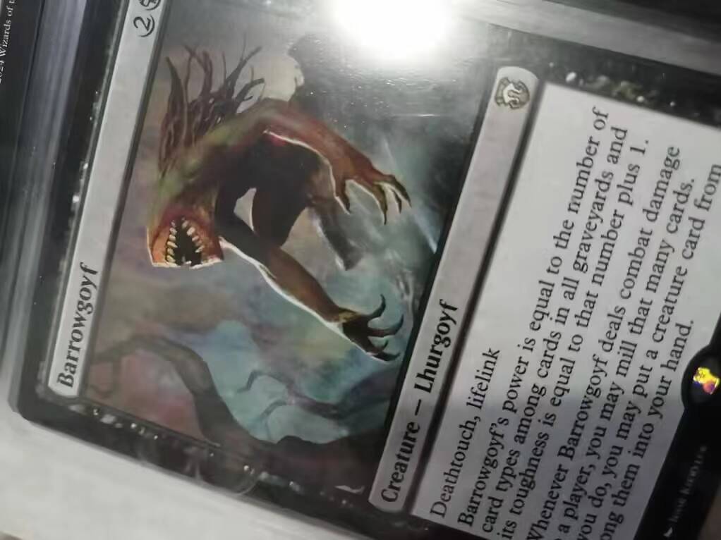 每当~对任一牌手造成战斗伤害时,你可以磨等量的牌。若你如此作,你可以将其中一张生物牌置于你手上。