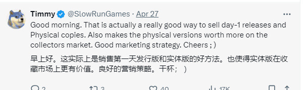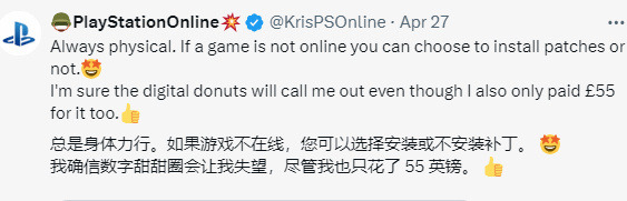 有不少玩家庆幸自己买了实体版,不准备安装首日补丁了。还有人称,这是个销售首日实体版的好办法,还能使得实体盘在收藏市场更有价值。各位购买的是实体还是数字版本呢?