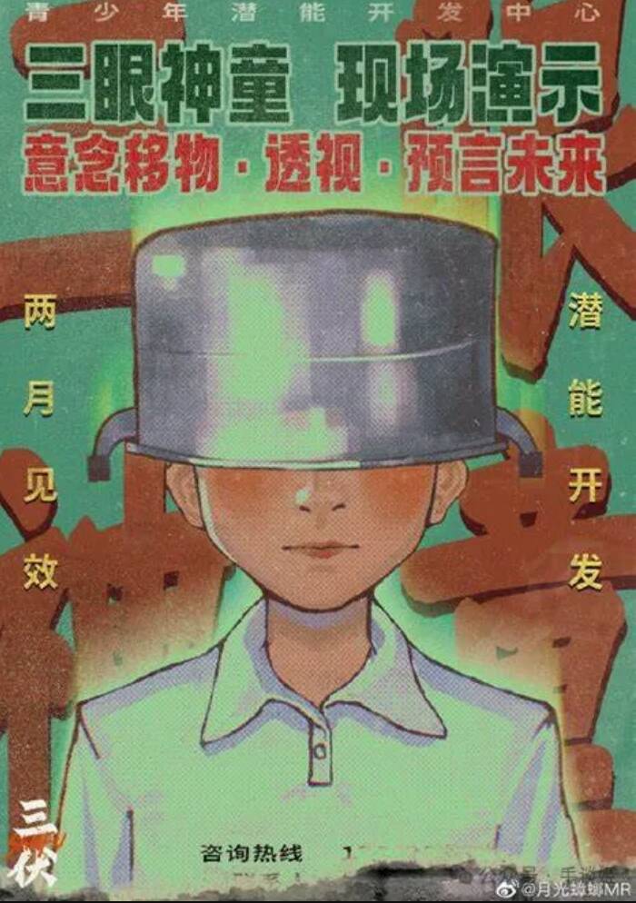 而在国产游戏《三伏》中,“三眼神童”的头上也顶着一个铁锅。