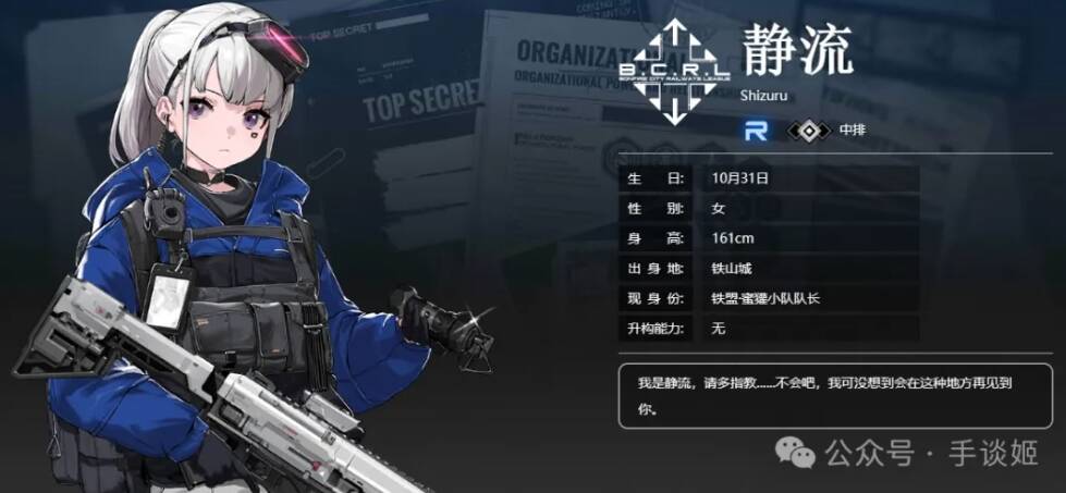 游戏里有个叫静流的角色,银发单马尾,还挺戳姬的。