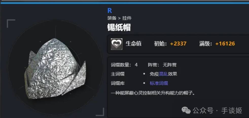 接下来是~锡纸帽!虽然看上去就是一顶叠成了帽子的锡纸,但是介绍中他可以“屏蔽心灵控制相关能力”。