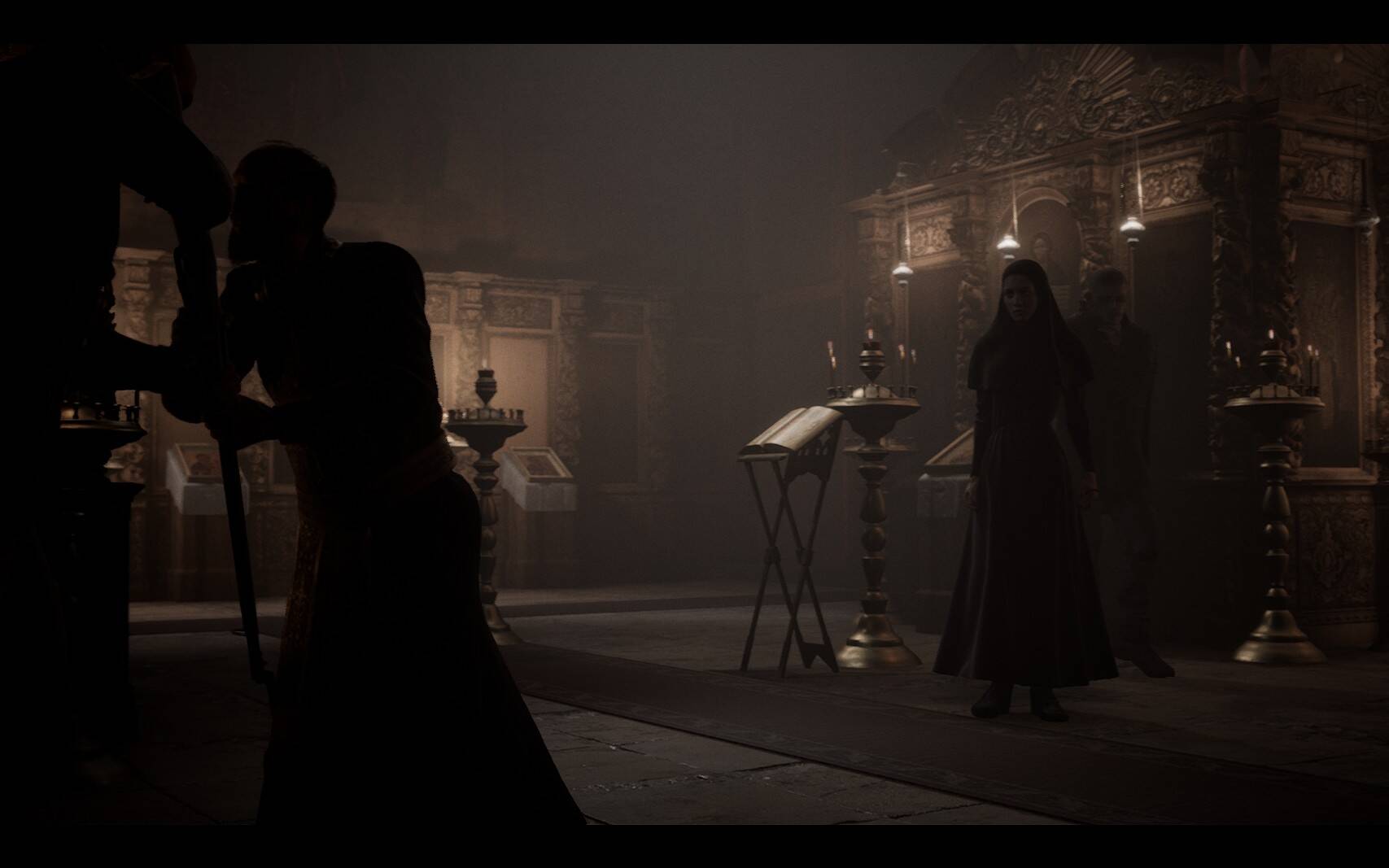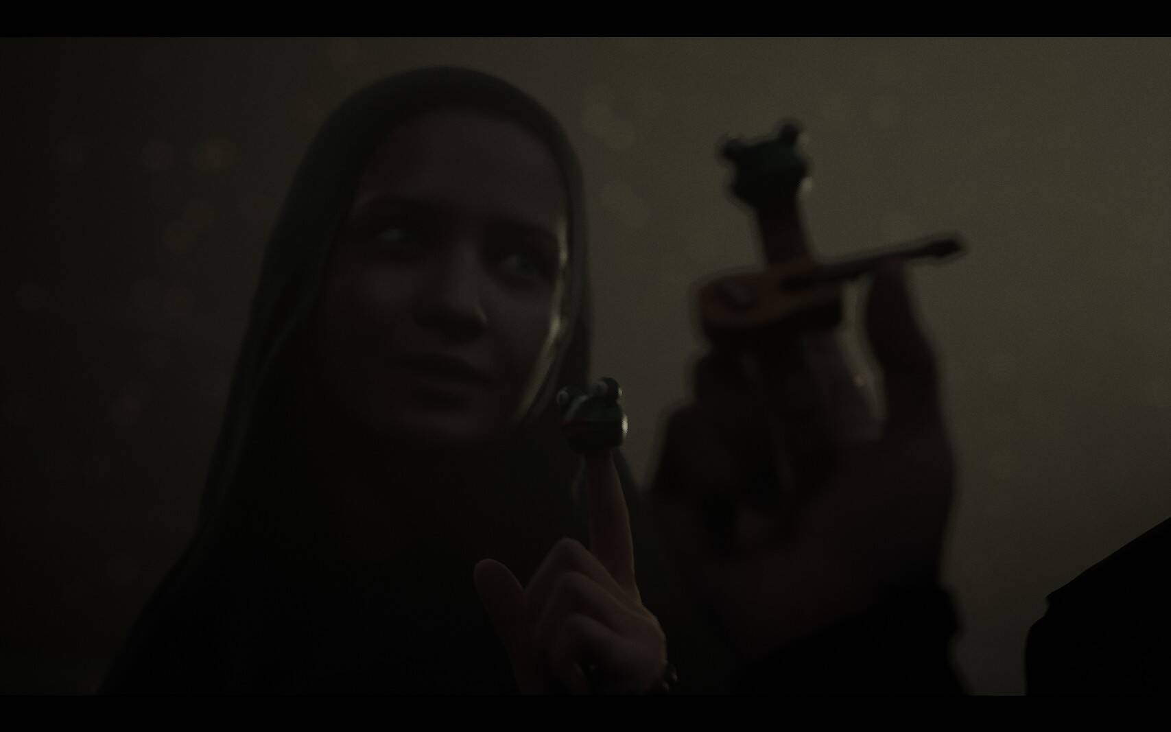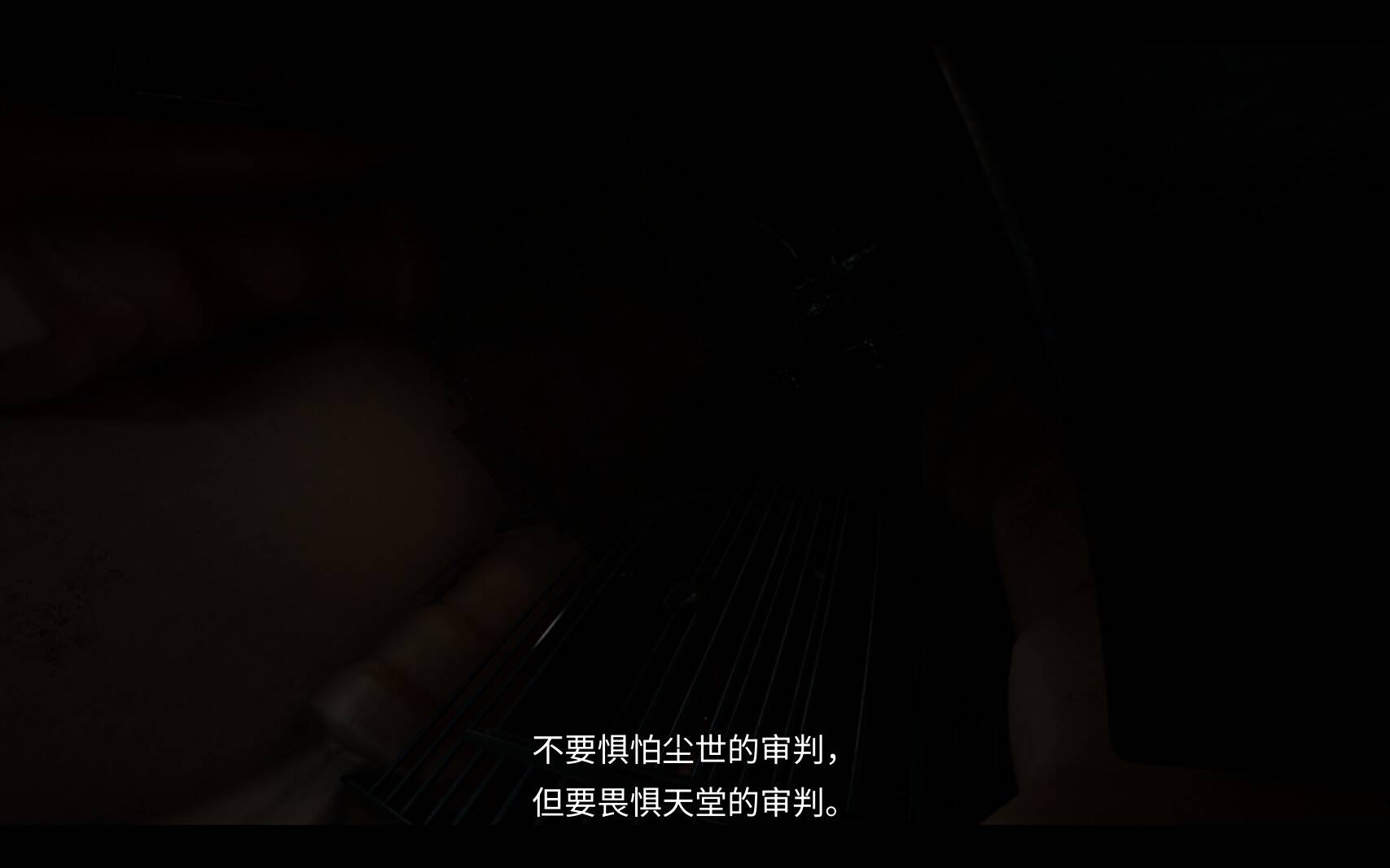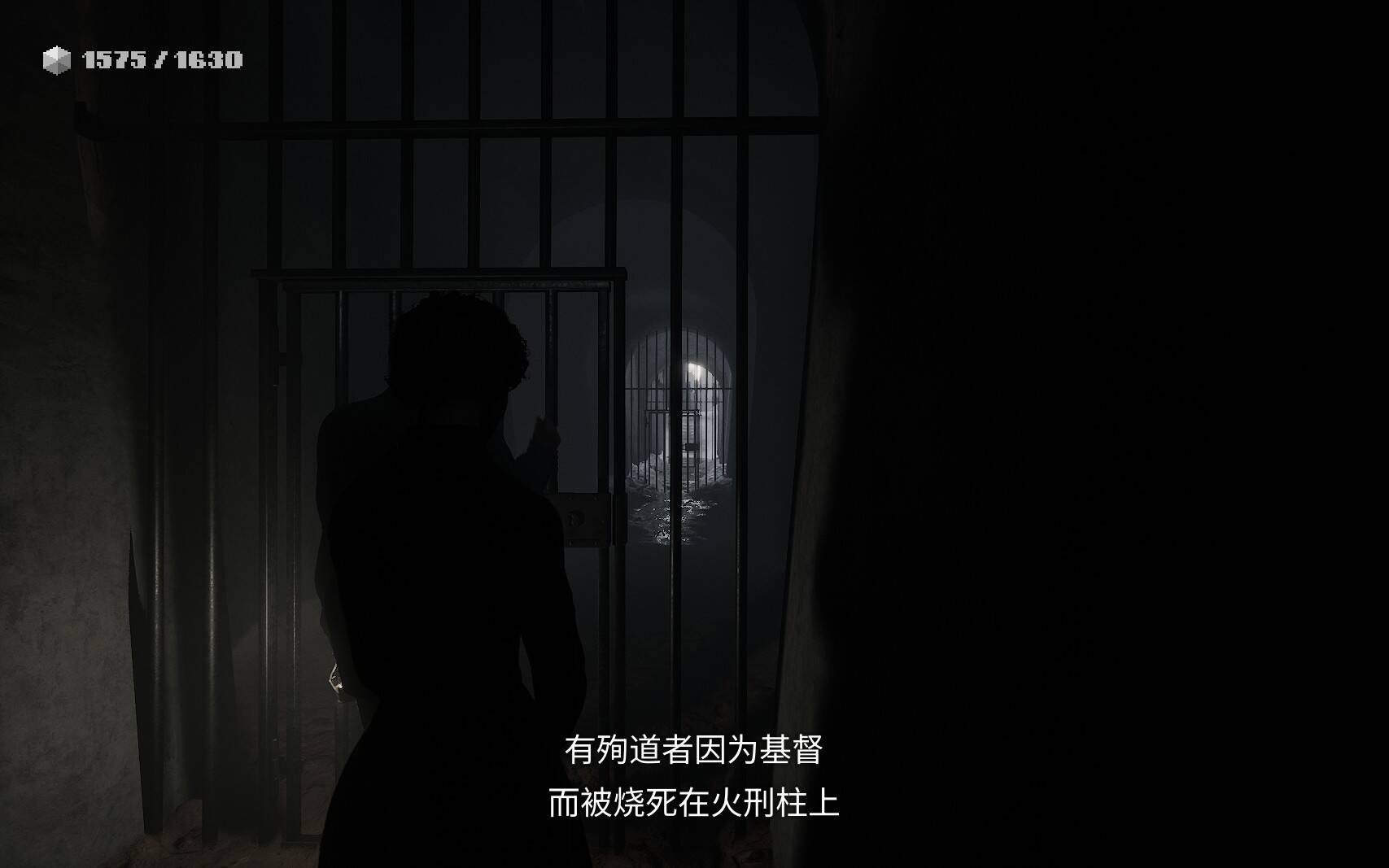 印蒂卡推倒了柜子,压住了那个贪婪伪善的狱卒,然后逃出了监牢。游戏的视角,也在此刻进入了第一视角,此刻的印蒂卡的信仰已经不存在了,她曾经扮演的修女身份如今不复存在,她曾经坚定的戒律也支离破碎,她一路跑出监狱,遇上了另一个丢失了信仰的人:曾经无比虔诚的伊利亚。