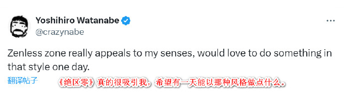 《宝石之国》、《动物狂想曲》工作室 Orange(橘子社)制作人 渡边义宏(Yoshihiro Watanabe)最近发推表示:“《绝区零》真的很吸引我,希望有一天能以那种风格做点什么。”