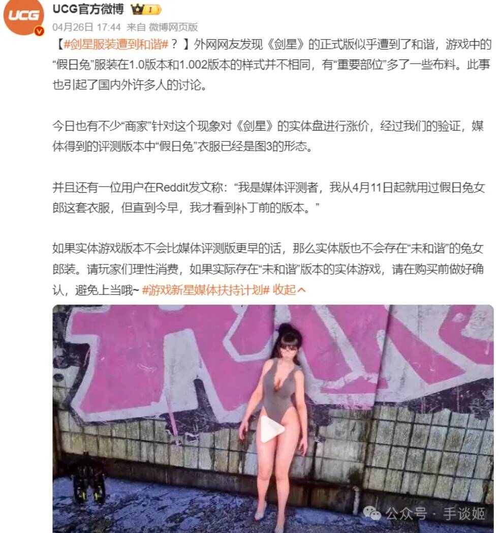 游戏媒体对此事是否知情?根据UCG提供的说法,他们到手的试玩版本就已经是和谐之后的了,也因此对于之前的版本并不知情。
