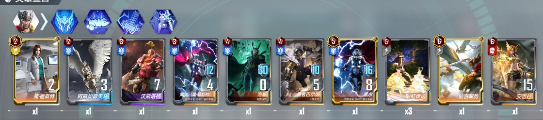 终场大概是这样 可以卖铁人或者泽莫给夜巡留位置 天神站两个提高容错 要是对面有蜘蛛的眩晕可以把马卡里放二号位