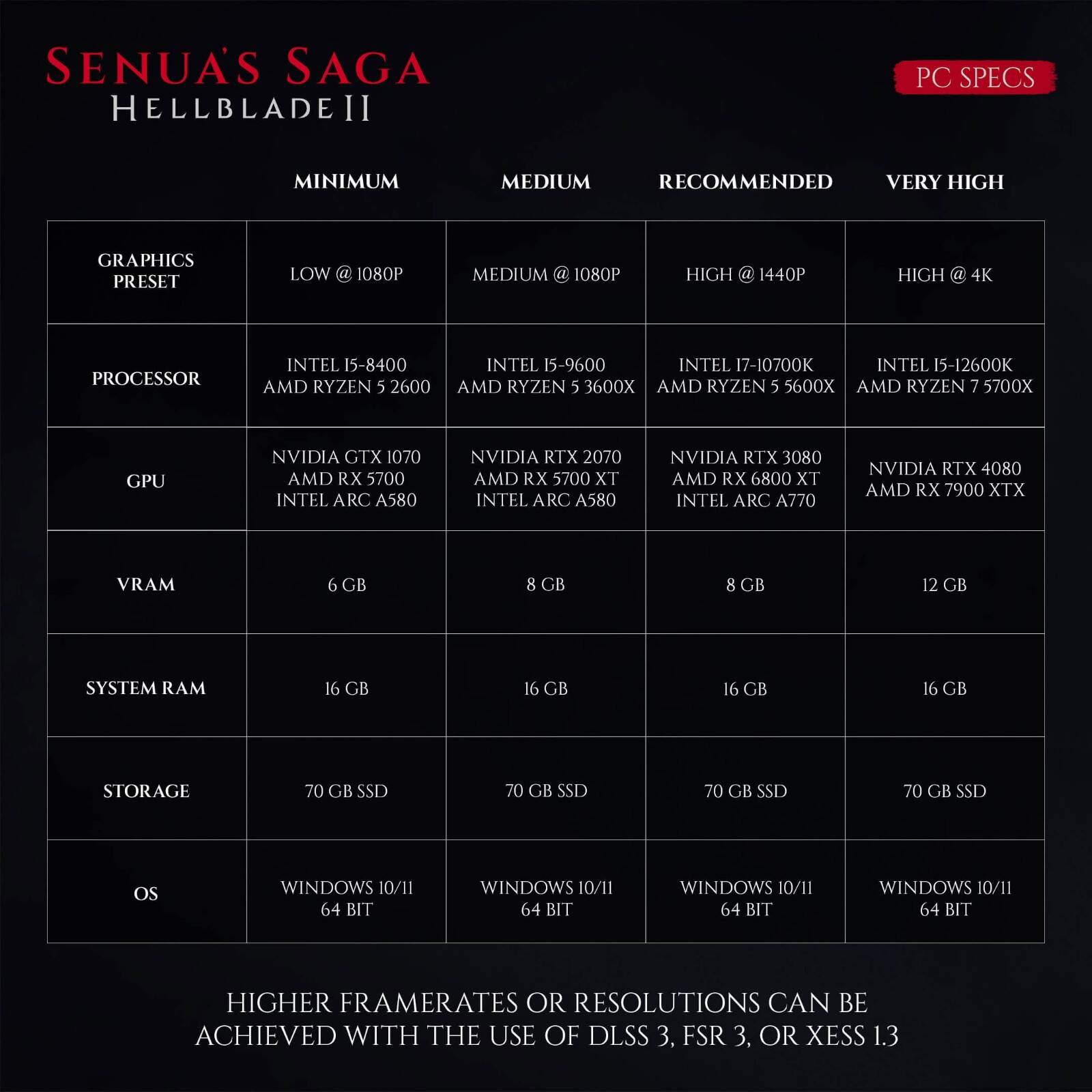 几天前,Ninja Theory 分享了《地狱之刃2:塞娜的传奇》的最低 PC 系统配置需求。今天官方公布了最终的、更详细的系统配置需求。