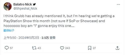 Nick Baker表示,五月的这次活动的关注焦点预计有以下几款游戏:《对马岛之魂2》《死亡搁浅2》《寂静岭2:重制版》等等,他也表示,这次发布会将非常精彩。