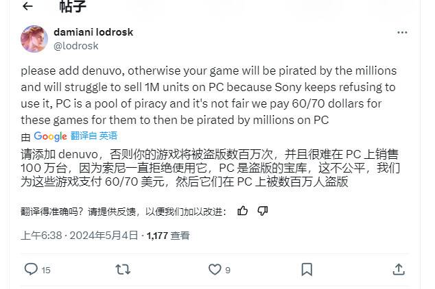 根据Steam页面,《对马岛之鬼》没有使用D加密技术,国外“热心粉丝”在官推留言,呼吁该作加入D加密技术,否则就会被破解,然后PC版销量很难达到100万,“索尼一直在拒绝使用D加密,PC是盗版天堂,这不公平,我们玩游戏花了60/70美元,而PC玩家玩的是盗版。”