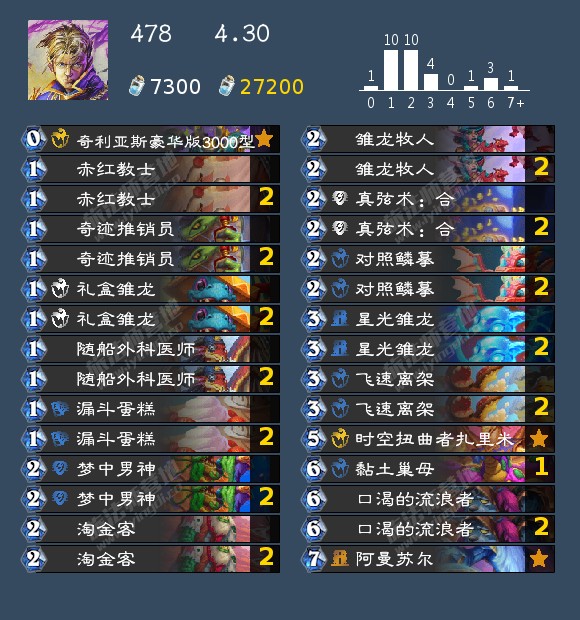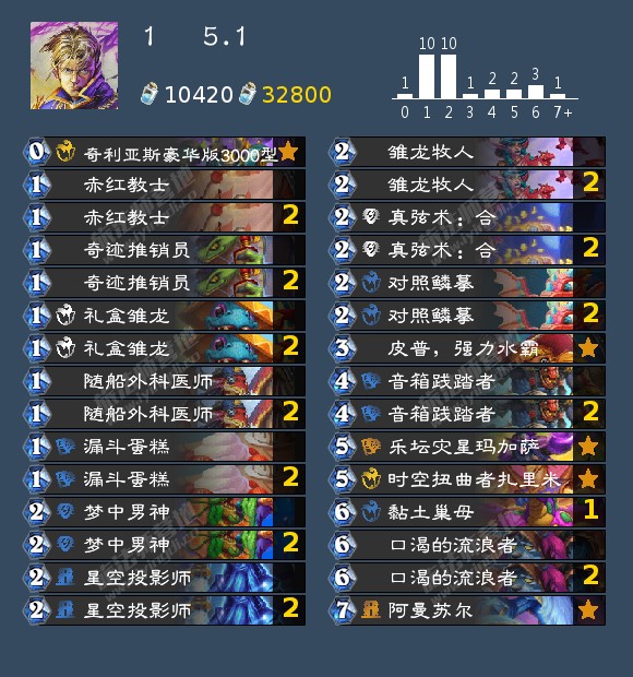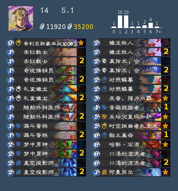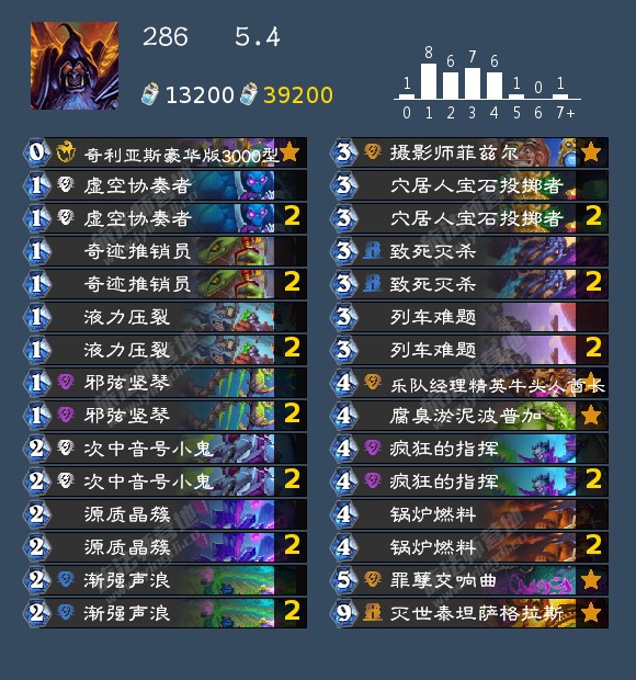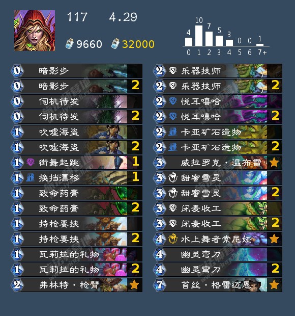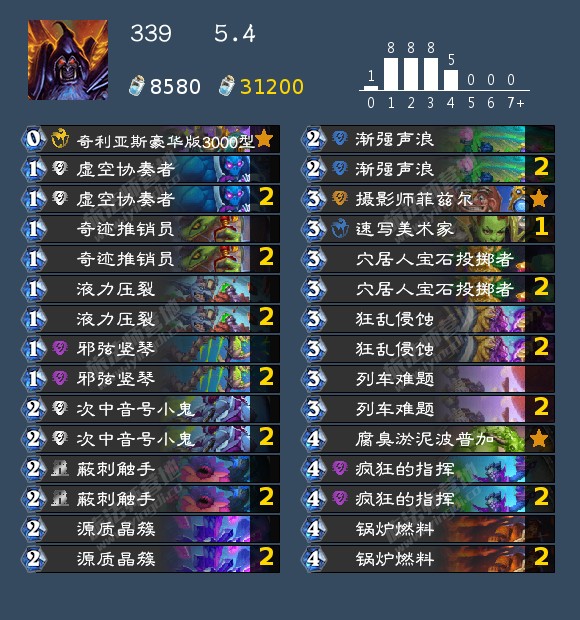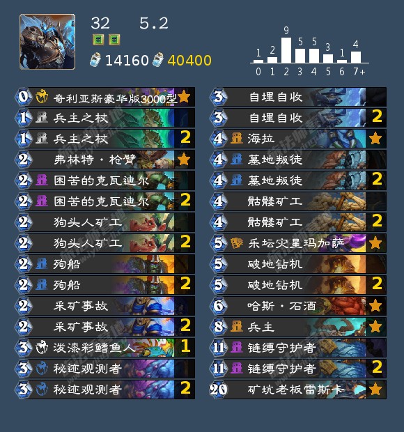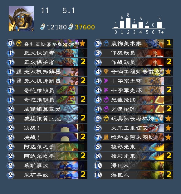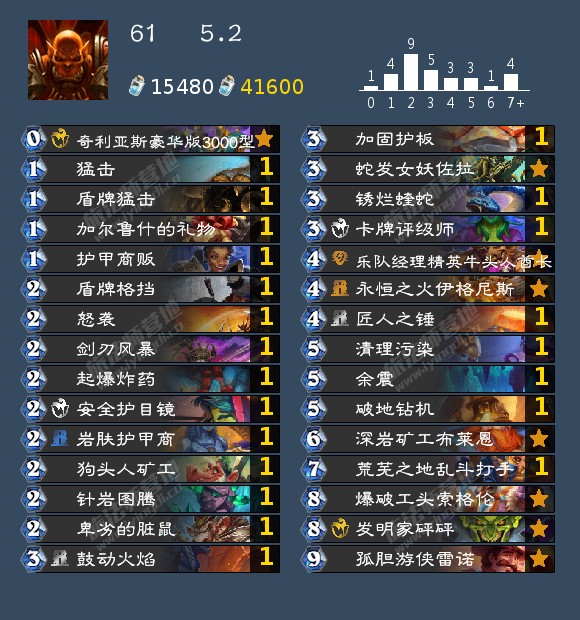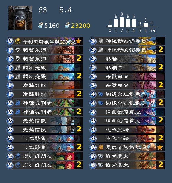 - 亡语猎(36,63)奇利亚斯是输能计数,叫亡语猎是因为他写了个deathrattle hunter在上面。