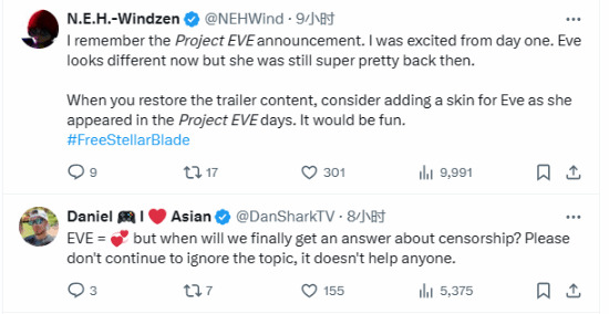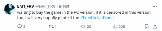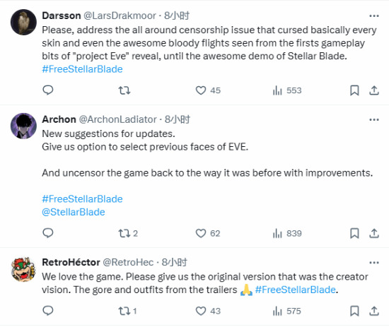 在推文下方的评论区中,一些玩家表示概念图中的伊芙要比现在的伊芙要更加好看,但大部分玩家的关注点都在于希望《剑星》官方能够将游戏中出现的“和谐”内容移除。有的玩家甚至表示,如果未来《剑星》的PC版中也出现了类似的“和谐内容”,那么自己就会玩盗版。