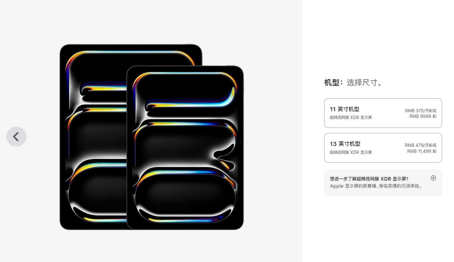 新iPad Pro提供256G、512G、1T以及2T储存空间可选,11英寸8999元起售、13英寸11499元起售,今日开启预定,下周开卖。
