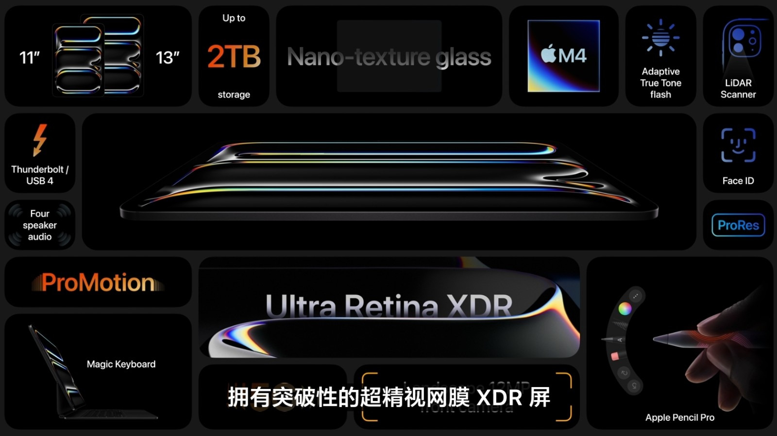 在iPad Air 6之后,苹果正式揭晓更强大的iPad Pro。新品首发搭载苹果自研的M4芯片,可以说就是市面上性能最强的平板电脑。