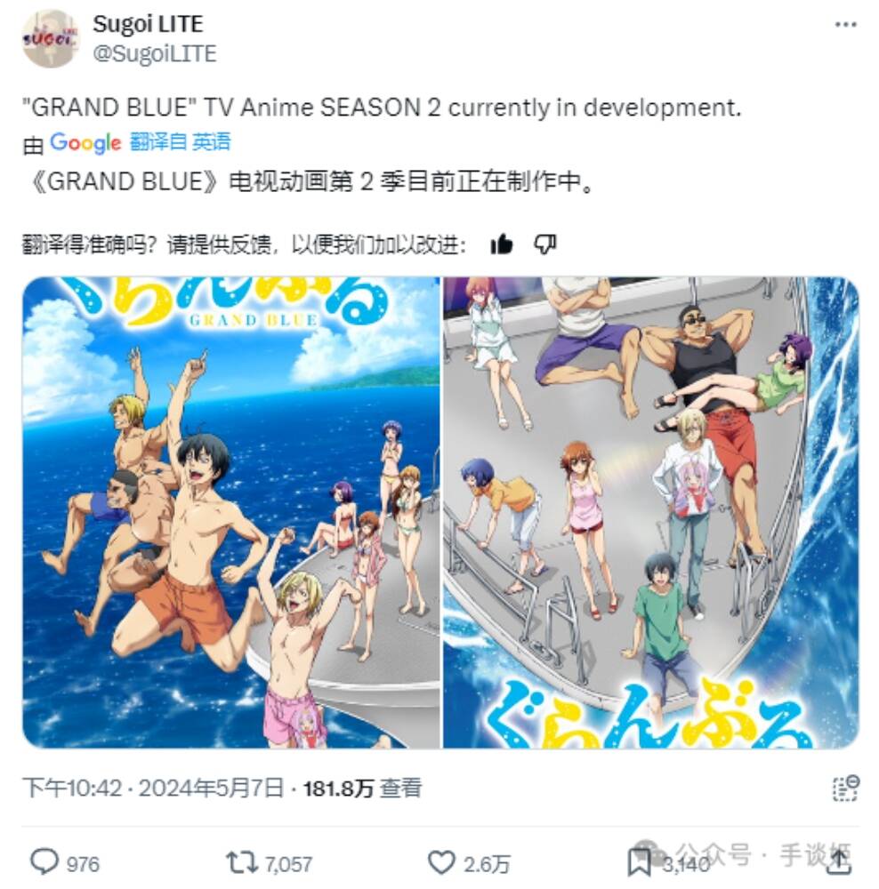 5月7日晚间,网络上传来了《碧蓝之海》第二季动画制作中的消息,引起了受众的兴奋。
